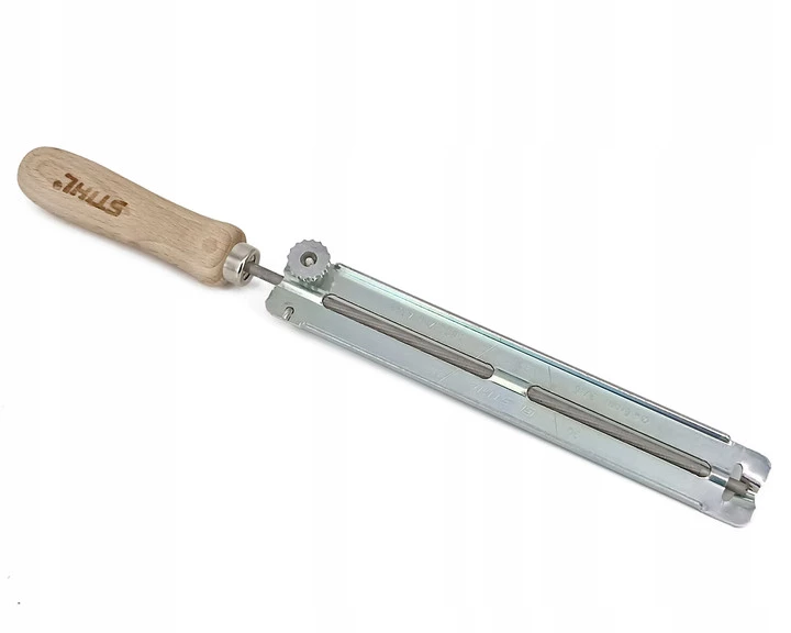 - Umożliwia samodzielne naostrzenie zębów tnących piły łańcuchowej