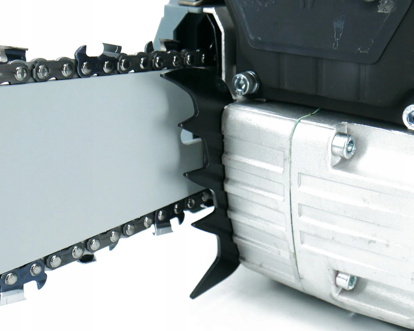 Bezpieczeństwo to absolutny priorytet dla Könner & Söhnen®, dlatego pilarki są wyposażone w hamulec inercyjny, który natychmiast zatrzymuje łańcuch w przypadku nieprzewidzianych sytuacji, oraz niezawodny chwytak łańcucha, który zapobiega odbiciu łańcucha. Dodatkowo, przycisk blokady przepustnicy eliminuje przypadkowe uruchomienie narzędzia.