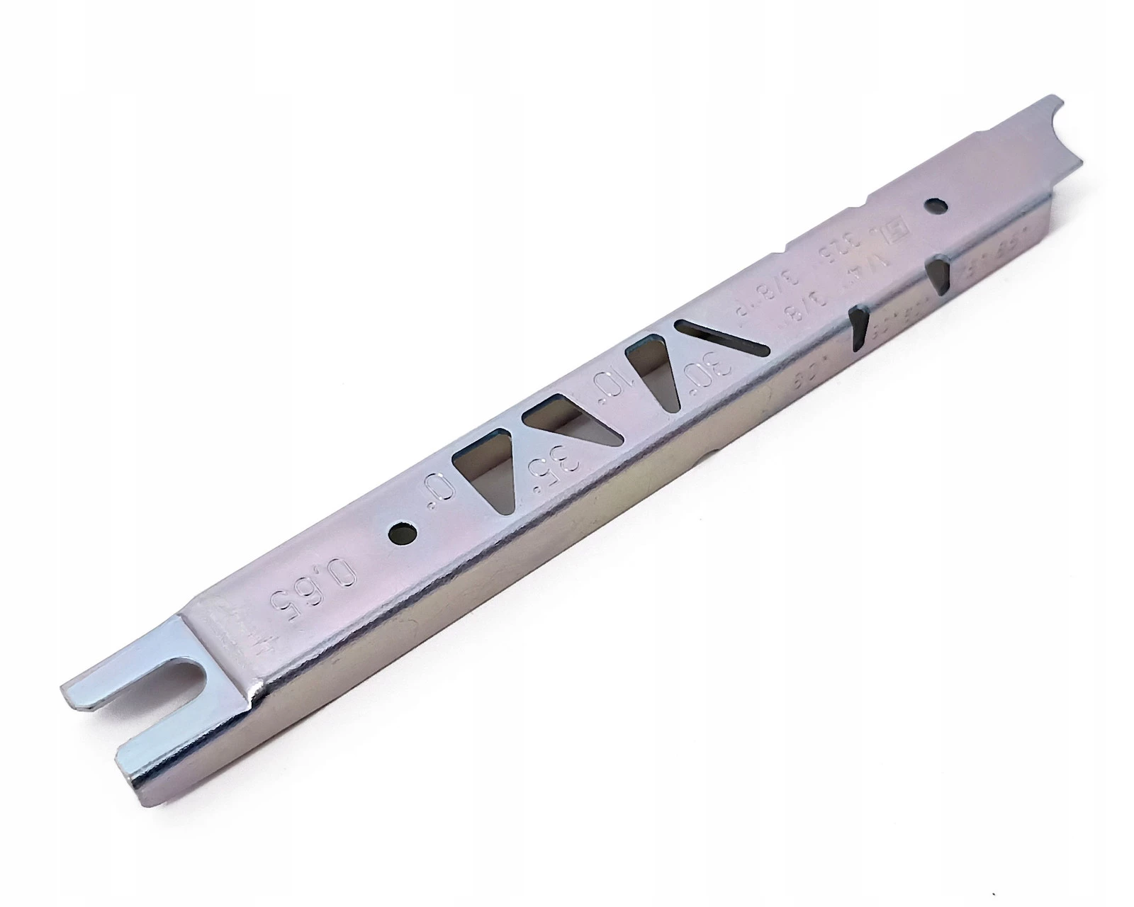 • Kontrola Wysokości Ogranicznika Zagłębienia: Najważniejsza funkcja przymiaru. Umożliwia sprawdzenie, czy wysokość ogranicznika zagłębienia jest prawidłowa w stosunku do naostrzonego zęba tnącego i w razie potrzeby skorygowanie jej za pomocą pilnika płaskiego.
