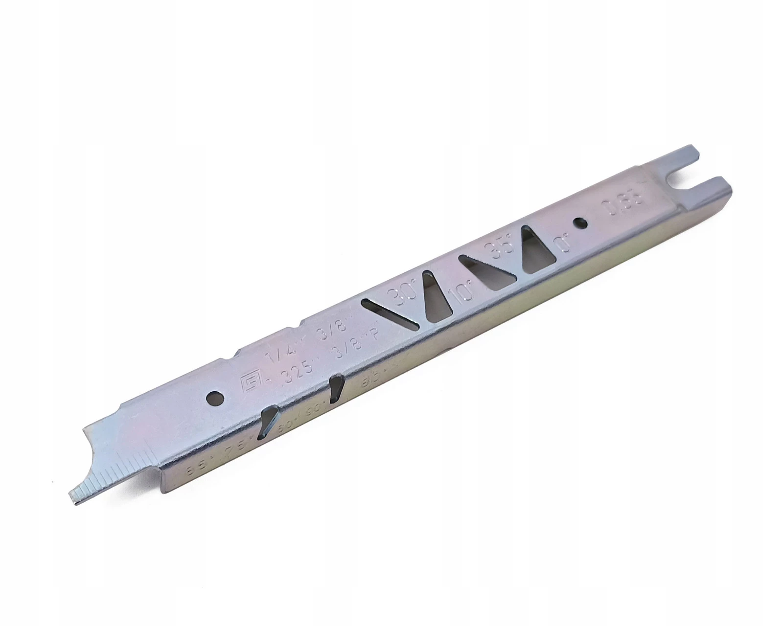 • Uniwersalny przymiar Stihl do konserwacji pił łańcuchowych. Umożliwia kontrolę kątów ostrzenia, długości zębów i wysokości ograniczników zagłębienia. Dodatkowo służy do czyszczenia rowka prowadnicy. Do łańcuchów 1/4", 3/8"P, .325" i 3/8".