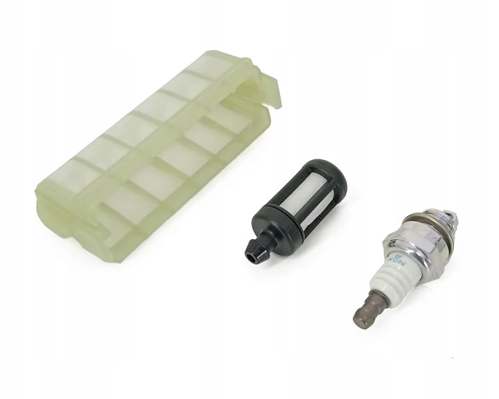 • Utrzymanie Wydajności Silnika: Czysty filtr powietrza gwarantuje prawidłowy skład mieszanki paliwowo-powietrznej, nowy filtr paliwa chroni gaźnik przed zanieczyszczeniami, a nowa świeca zapłonowa zapewnia pewny i stabilny zapłon. Wszystko to pozwala utrzymać pełną moc pilarki.
