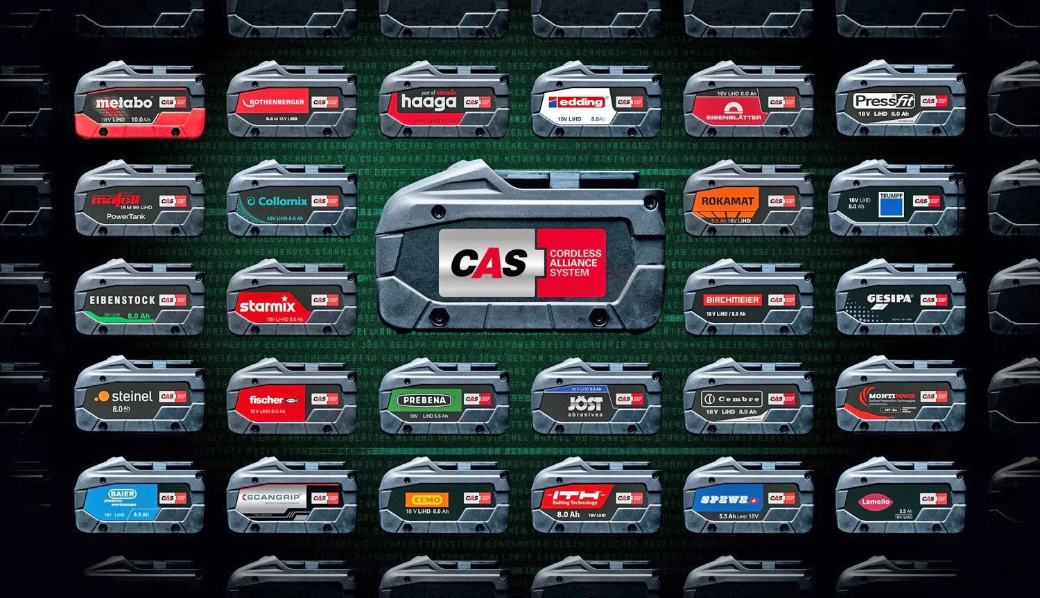 100% kompatybilności dla ponad 300 modeli elektronarzędzi cenionych marek CAS jest wiodącym na świecie standardowym systemem akumulatorowym wykorzystywanym przez wielu znanych producentów elektronarzędzi. Oferuje on bogaty wybór wydajnych i mocnych maszyn.