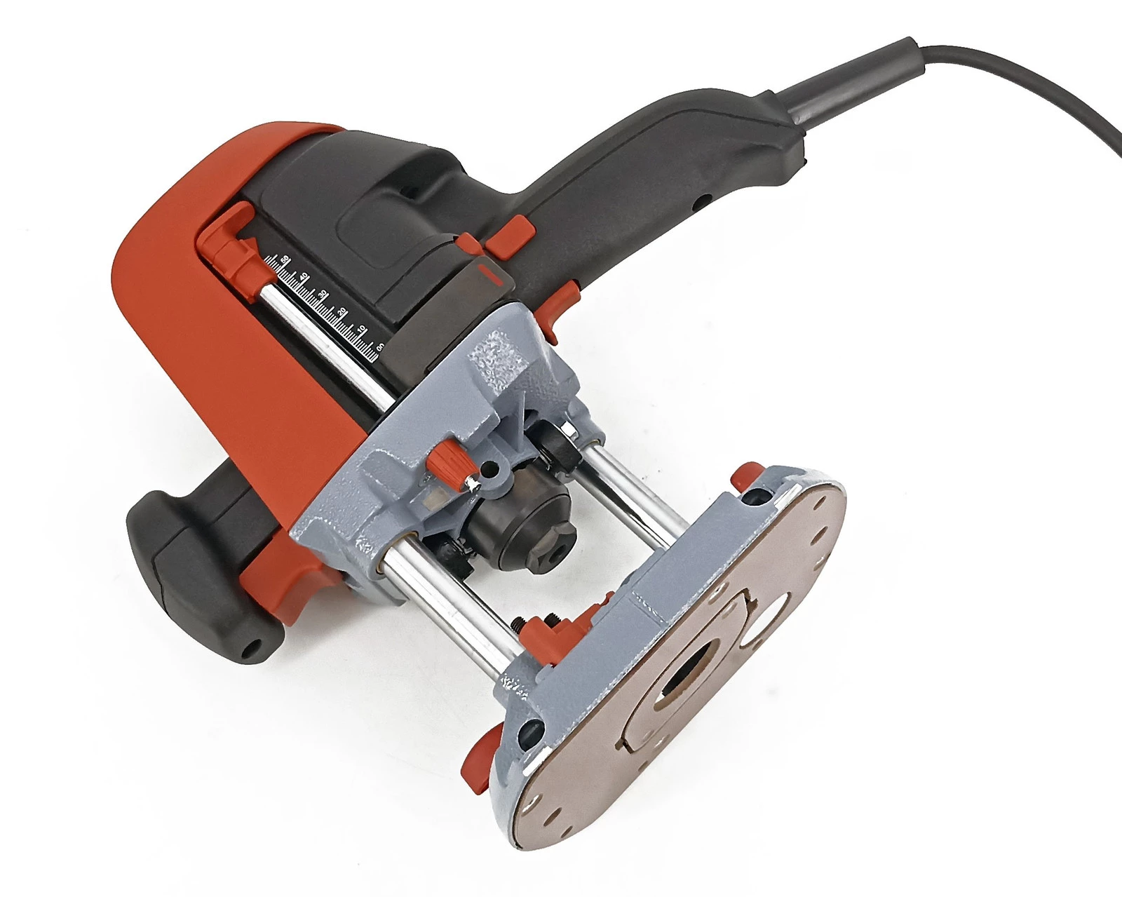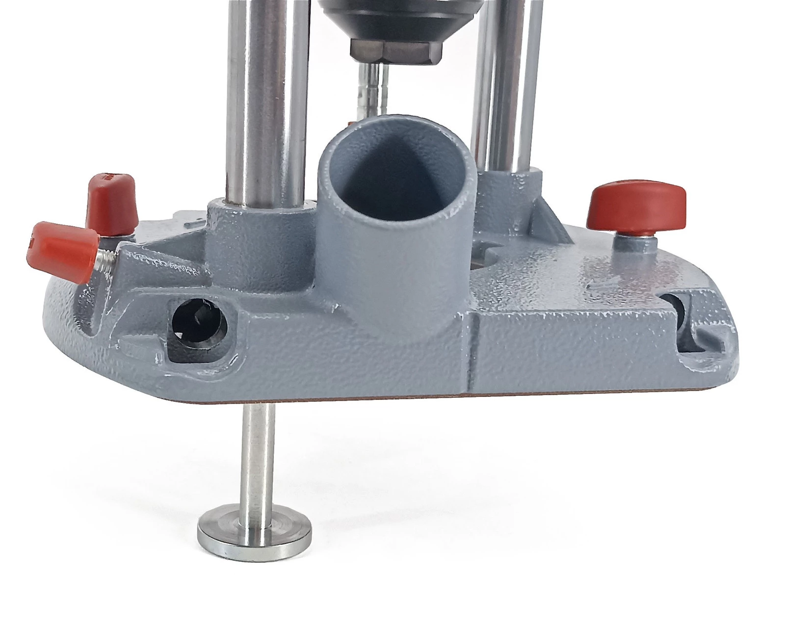 - Obrotowy ogranicznik głębokości: Zapewnia wysoką powtarzalność i dokładność ustawień głębokości frezowania.