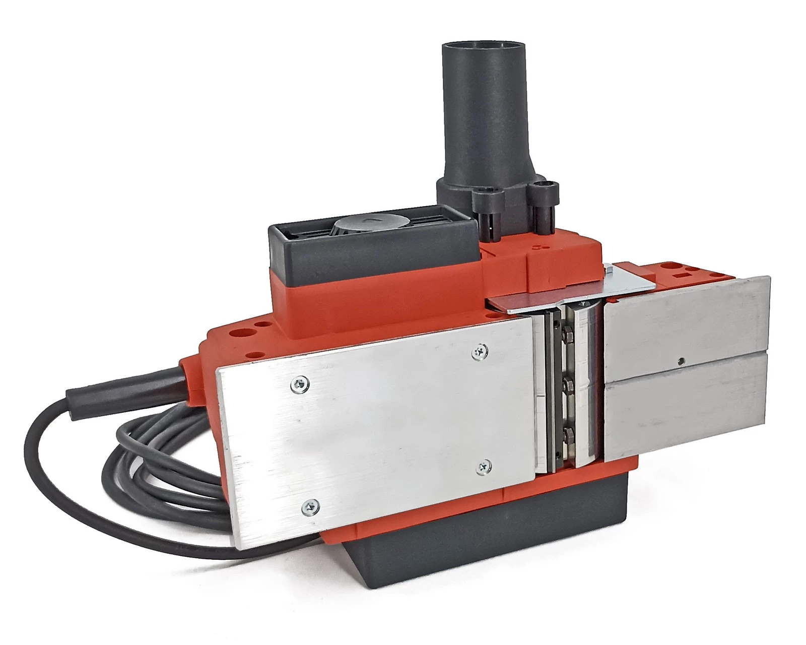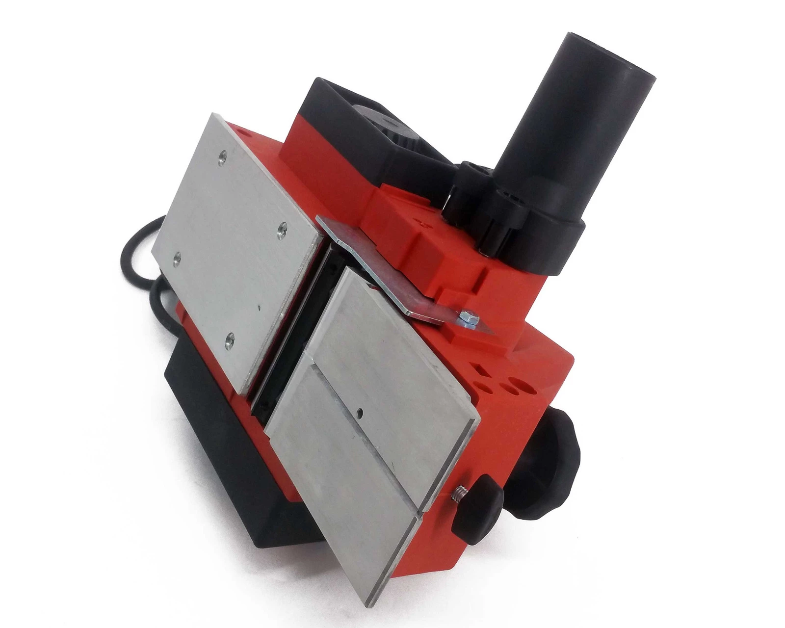 Elektryczny strug ręczny MHU 82 w zestawie z jednostką stacjonarną i uchylna osłona nożna.
