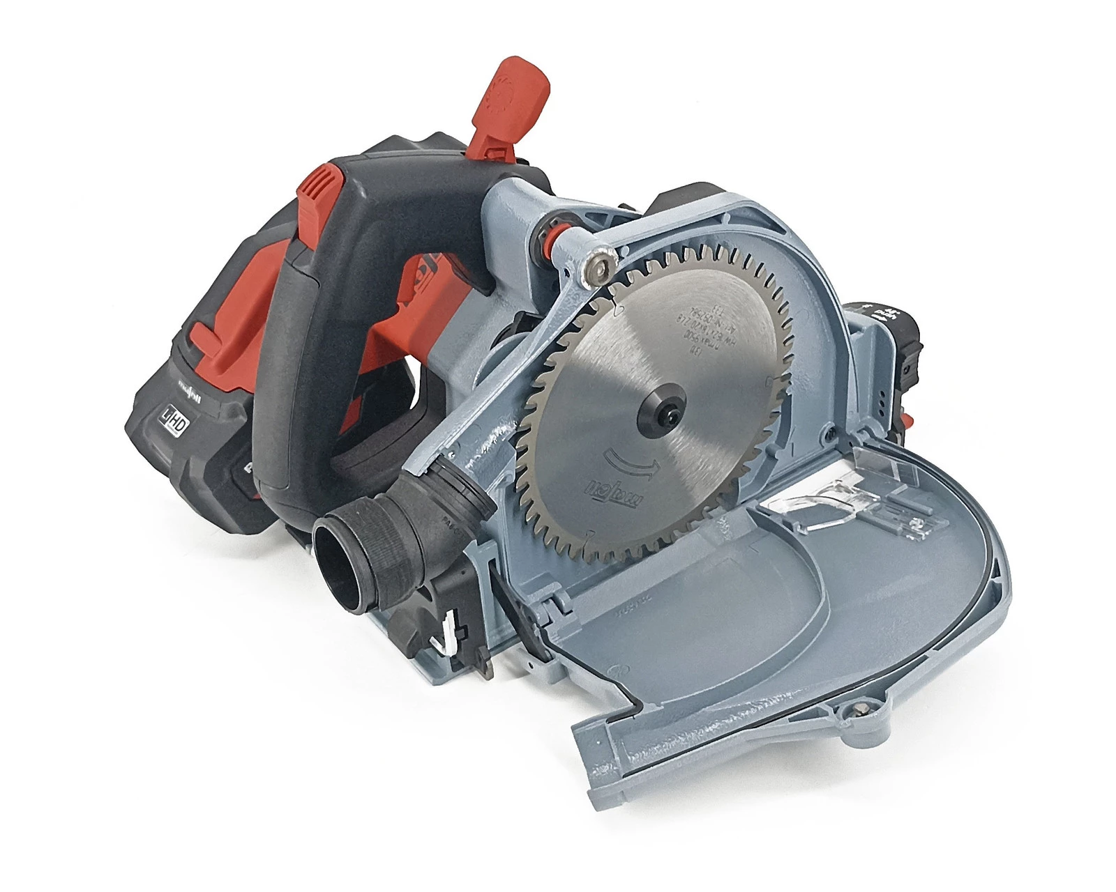 Najszybszy na świecie system wymiany tarczy. Wystarczy wcisnąć przycisk i zwolnić dźwignie. Obudowa otwiera się i pozwala na wymianę tarczy w kilka sekund, bez ryzyka uszkodzenia zebów tarczy.