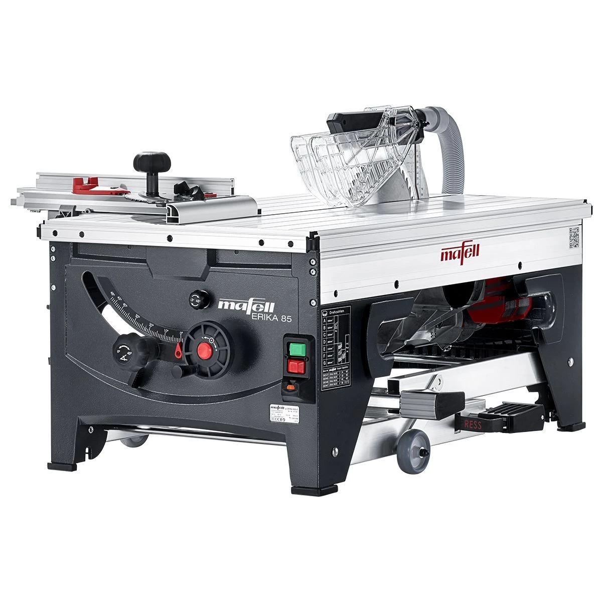 - Profesjonalna pilarka stołowa Mafell ERIKA 85 Ec (2500W) z kompletnym wyposażeniem: podstawa Quickstand, stół przesuwny, stół poszerzający i więcej. Wysokość cięcia 85mm. Precyzyjna i mobilna, idealna do drewna, tworzyw i aluminium.