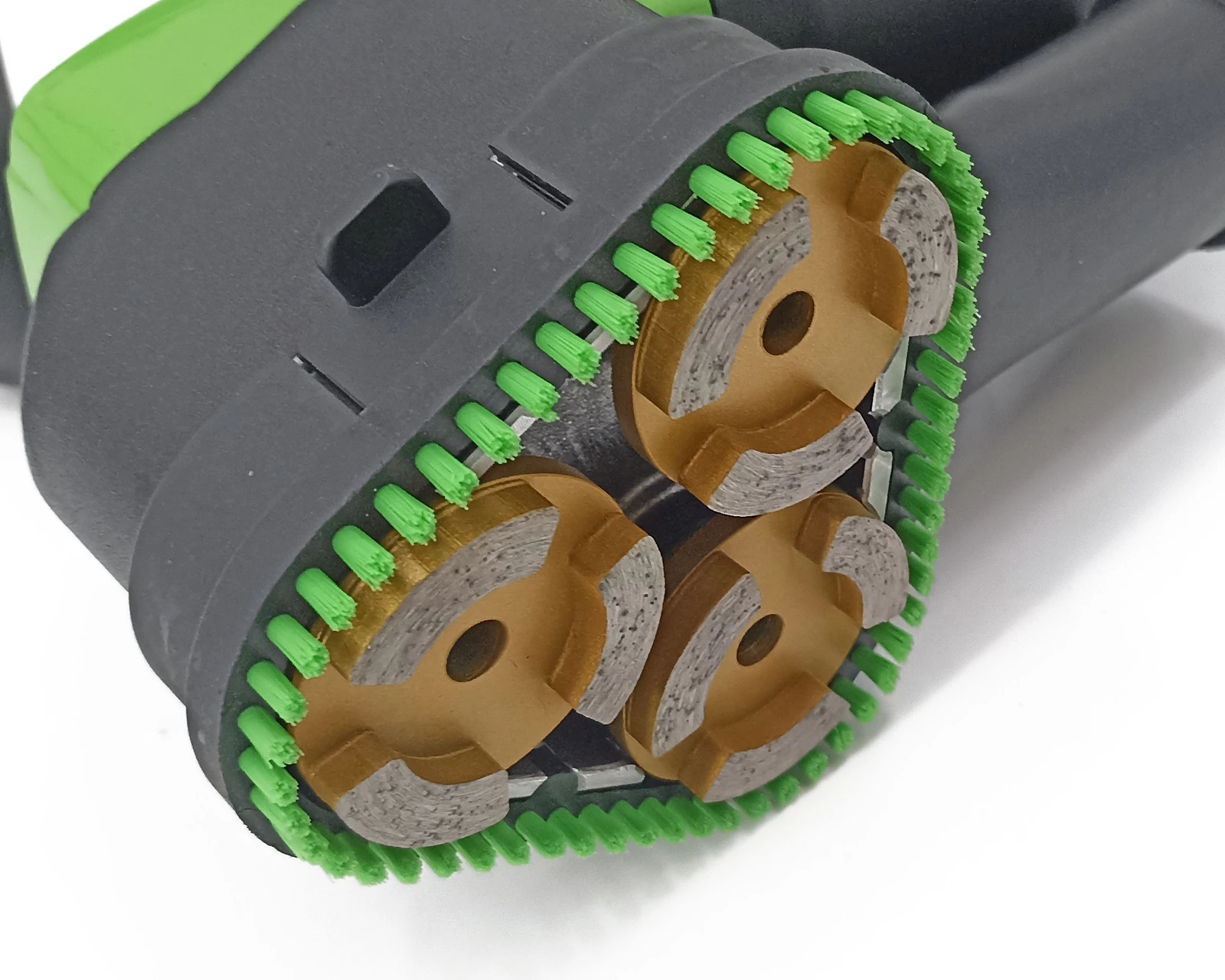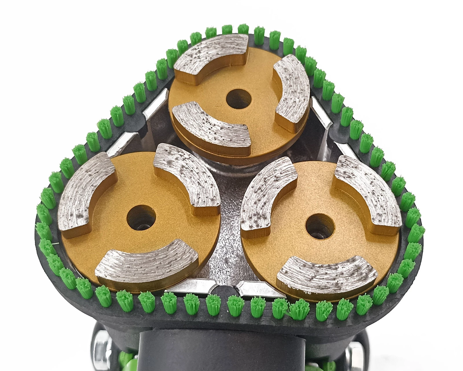 Szlifuje aż do krawędzi po zdjęciu wieńca szczotkowego.