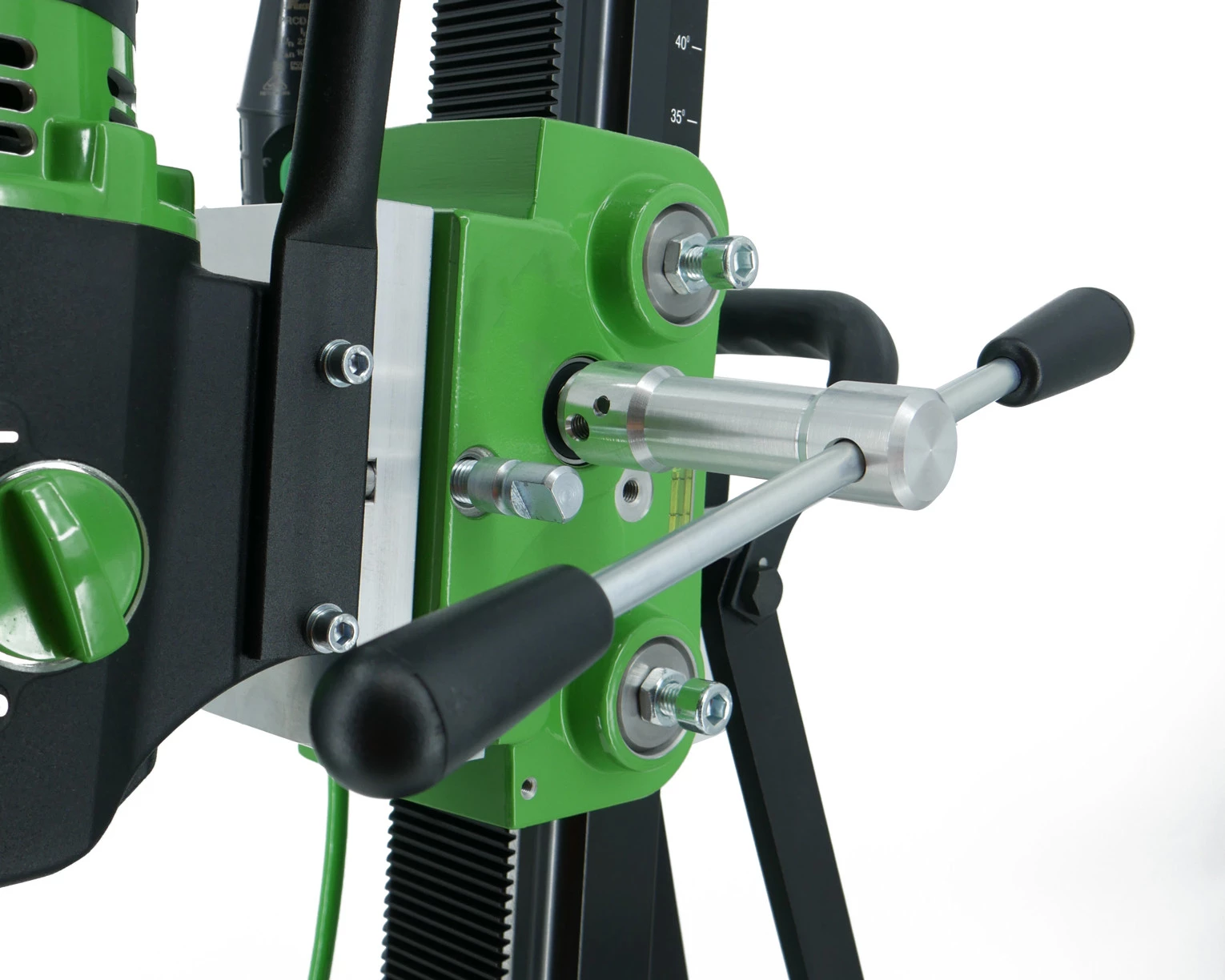 - Statyw wyposażony w dźwignię posuwu umożliwiającą zmianę położenia maszyny bez używania dodatkowych kluczy