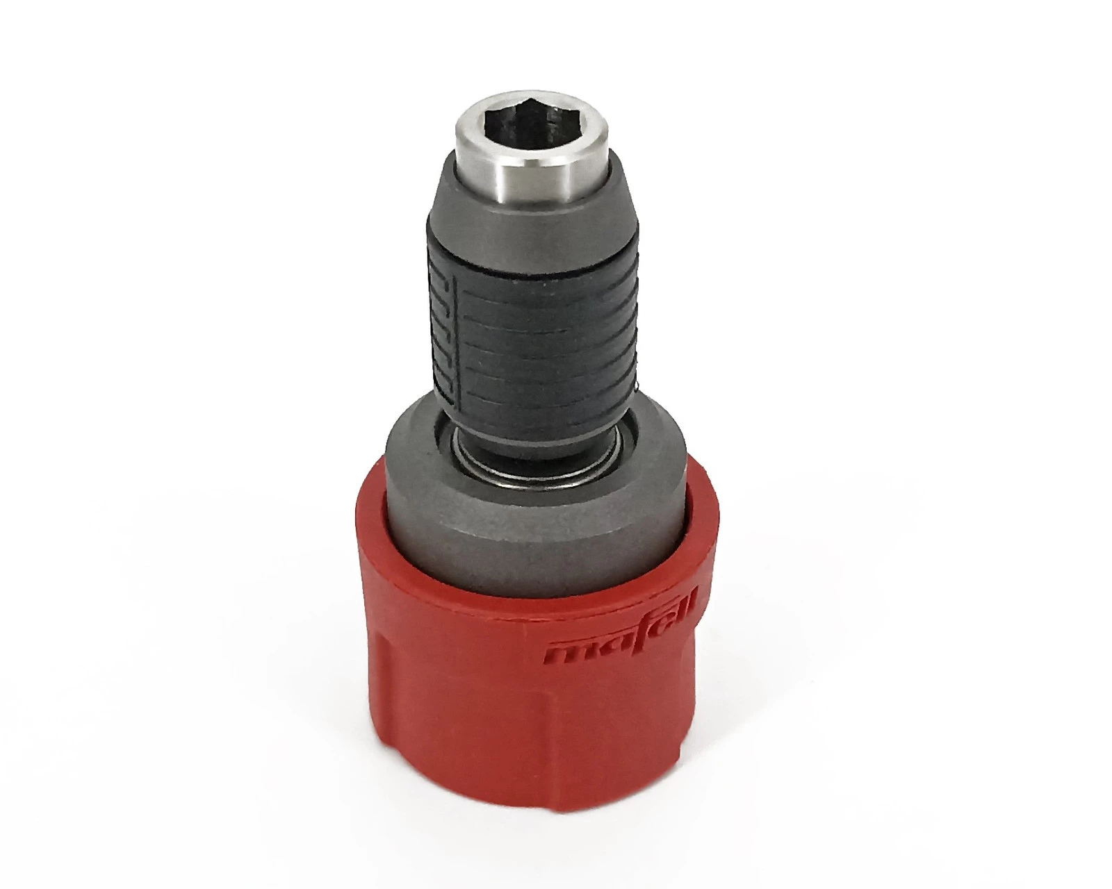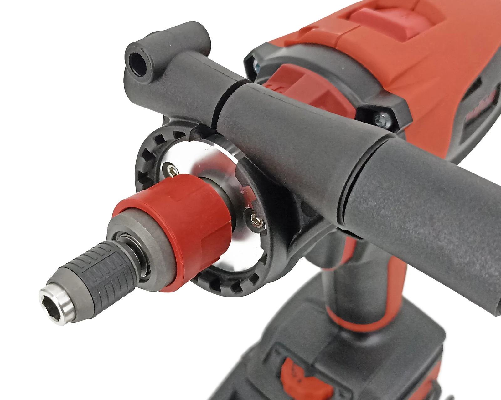 - Przemyślana Ergonomia i Funkcjonalność: Wrzeciono z gniazdem 1/4" pozwala na pracę z bitami bez uchwytu, skracając długość narzędzia. Kołnierz mocujący (Ø 43 mm) umożliwia montaż w stojakach wiertarskich, a jasna dioda LED z funkcją poświaty oświetla miejsce pracy.