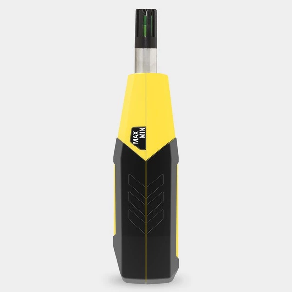 - Zaawansowane Funkcje Pomiarowe: Urządzenie wyposażono w funkcję wyświetlania wartości minimalnej i maksymalnej (MIN/MAX) oraz możliwość łatwego przełączania jednostek temperatury pomiędzy stopniami Celsjusza (°C) a Fahrenheita (°F).