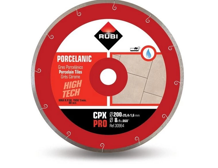 Tarcze CPX są przeznaczone do precyzyjnego i szybkiego cięcia gresów porcelanowych. Dzięki obrzeżu z nacięciami spiralnymi, tarcze CPX przyspieszają cięcie twardych gresów porcelanowych, redukując jednocześnie napięcia generowane podczas cięcia. Ostrza o grubości mniejszej niż 2 mm nie są zalecane do cięć ukośnych.