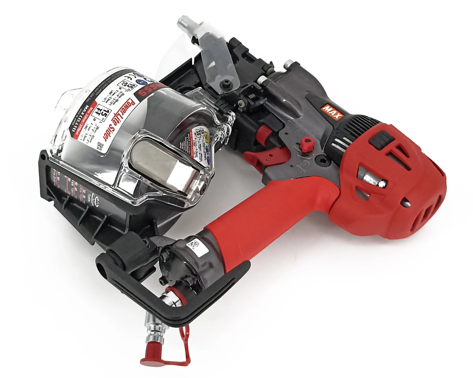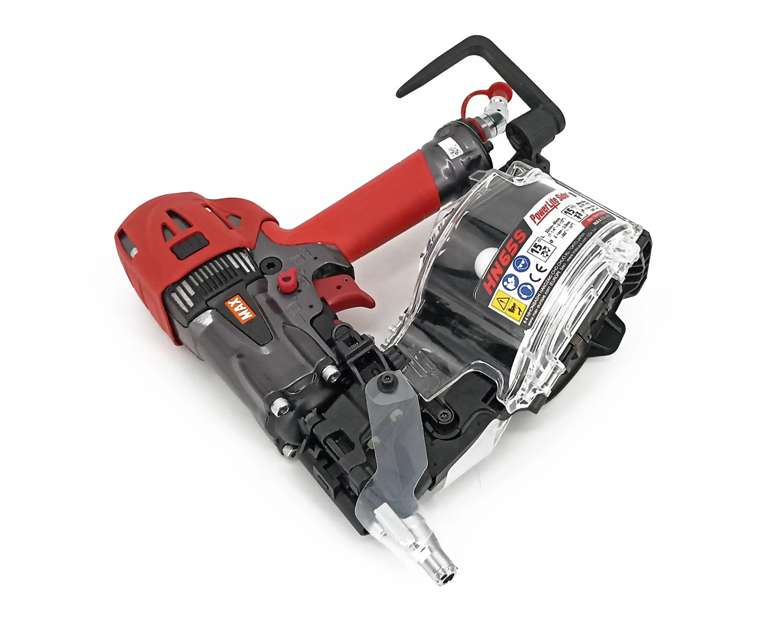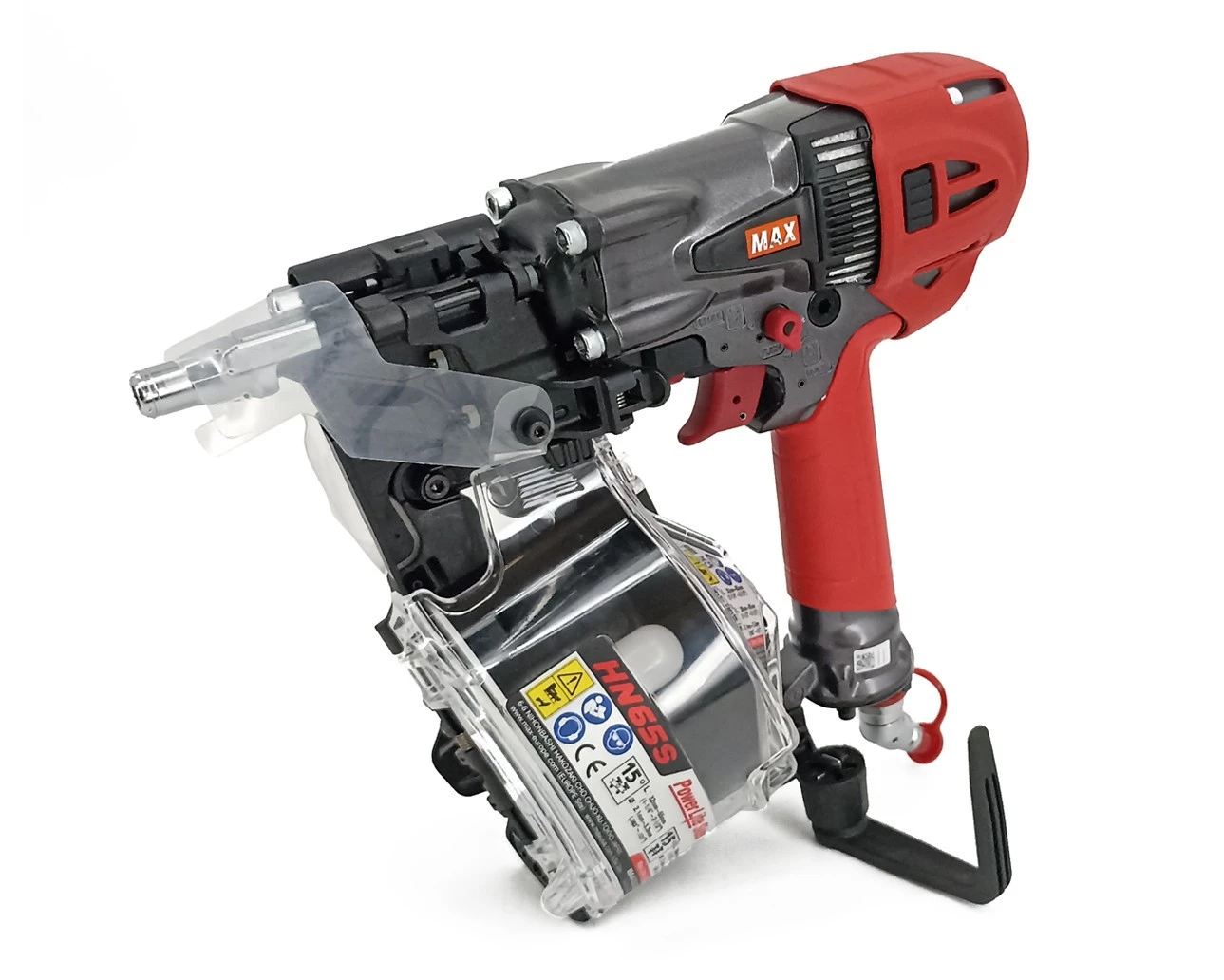 MAX HN65S to najwyższej klasy profesjonalna pneumatyczna gwoździarka bębnowa zasilana sprężarką Powerlite firmy MAX. HN65 może być stosowana do sidingu, powierzchni zewnętrznych, deskowania, poszyć i podłoży.