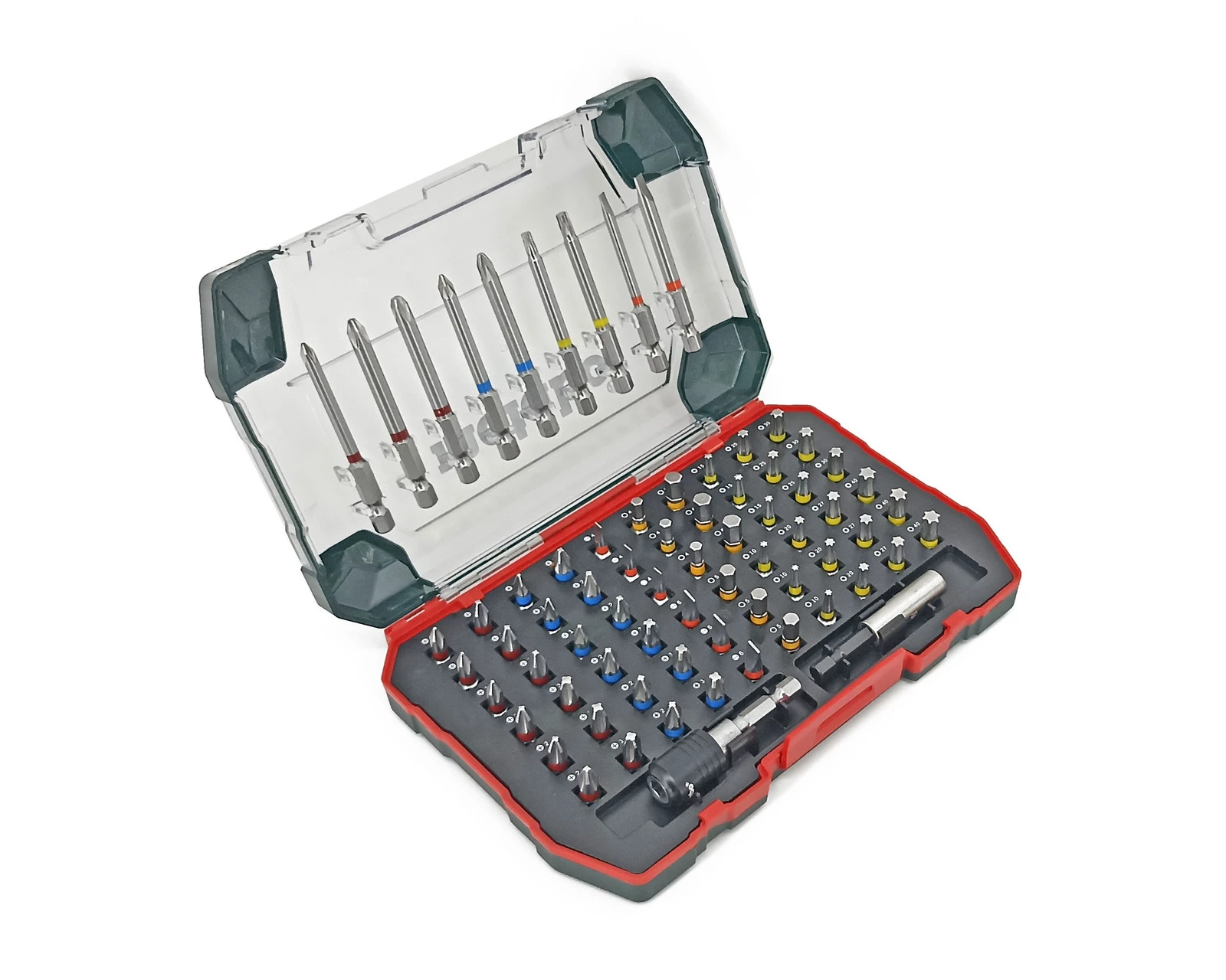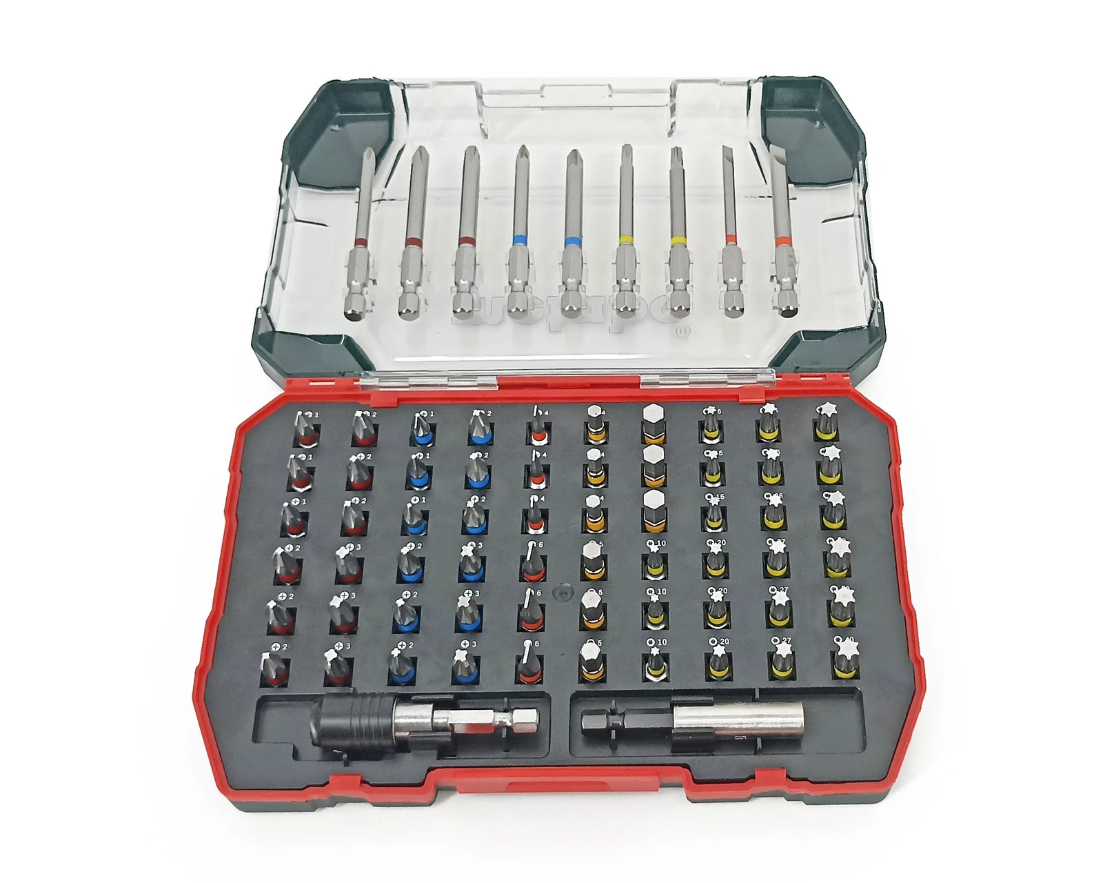 • Bity ze stali chromowo-wanadowej (o jakości S2) z oznaczeniem barwnym umożliwiającym szybkie i łatwe odnalezienie właściwego bitu;