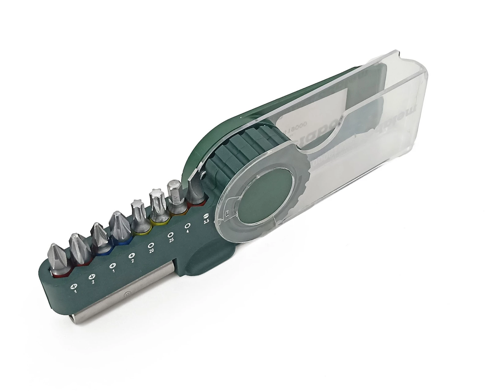 - Bity ze stali chromowo-wanadowej (o jakości S2) z oznaczeniem barwnym umożliwiającym szybkie i łatwe odnalezienie właściwego bitu;