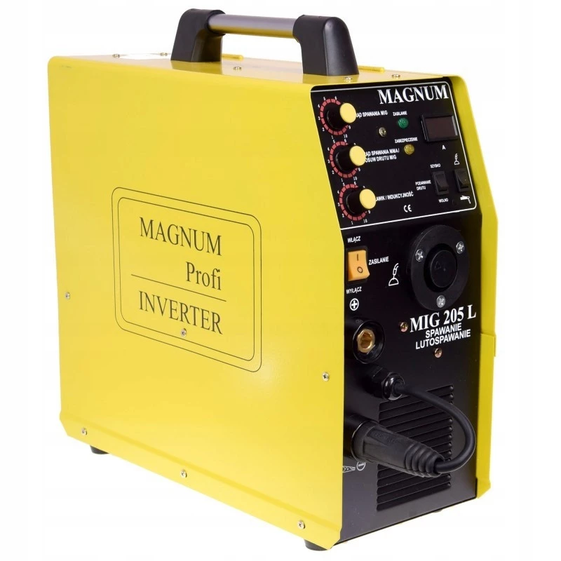 Producent:MAGNUM || Metody spawania: MIG, MAG, MMA, FLUX || Zasilanie: 230V || Maksymalny prąd spawania: 200A || Cykl pracy: 60% ||