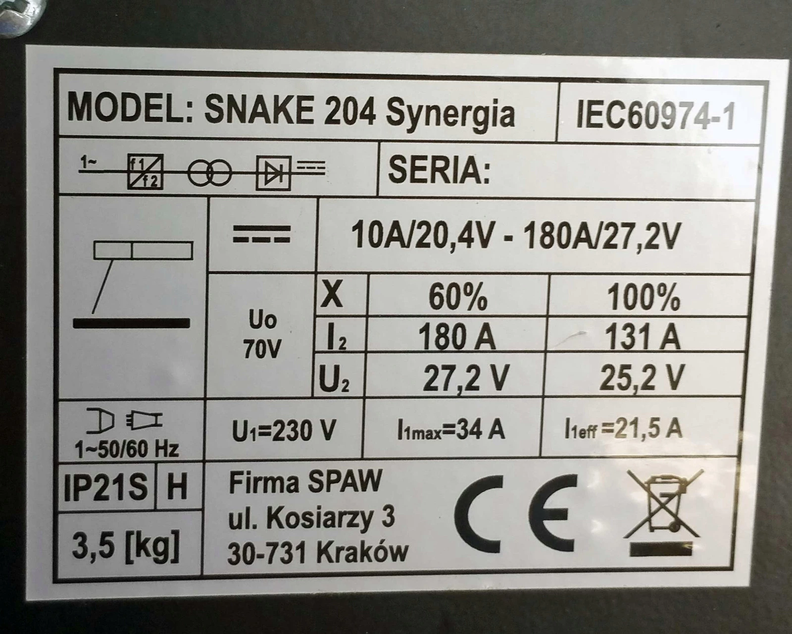 Urządzenie SNAKE 204 DIGITAL SYNERIGA jest spawarką przeznaczoną do ręcznego, elektrycznego spawania stali i innych spawalnych metali metodą MMA.