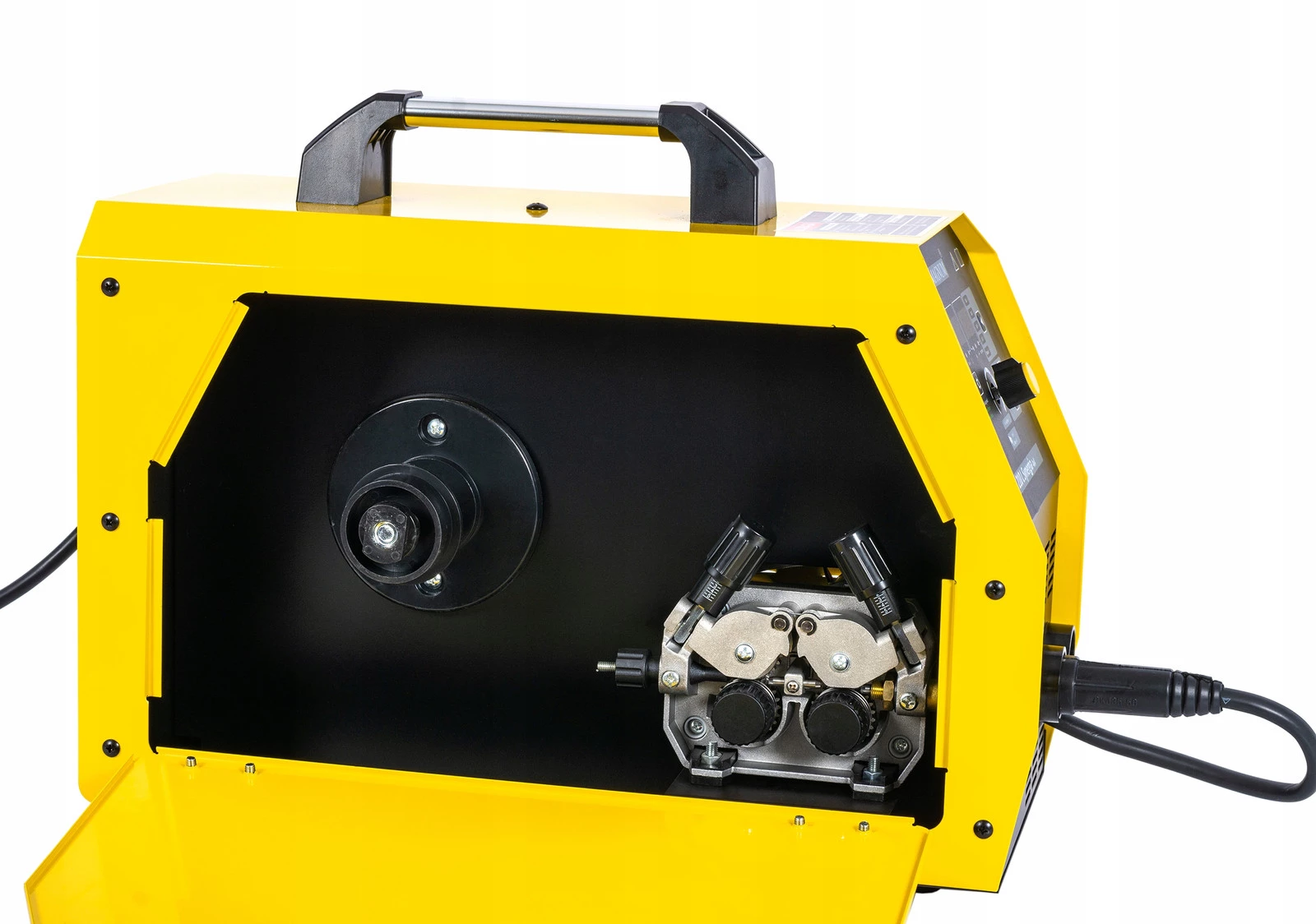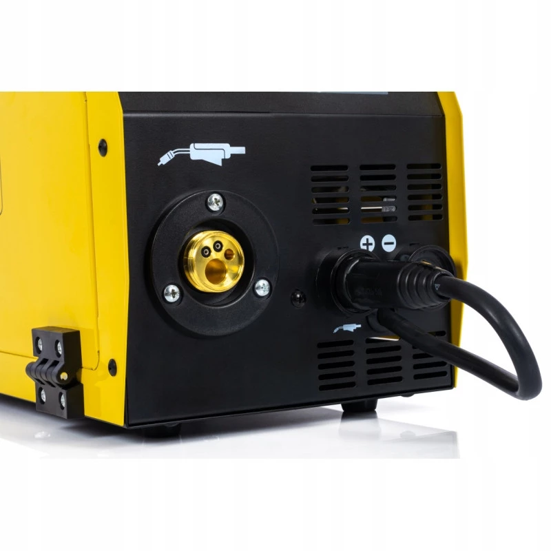 Urządzenie posiada płynną regulacje parametrów spawania, wyposażone jest w przeciążeniowy układ zabezpieczenia termicznego, zapobiegający nadmiernemu przegrzewaniu się. Spawarka wyposażona jest w 4-rolkowy podajnik drutu z gniazdem EURO co pozwala na podłączenie różnych typów uchwytów spawalniczych.
