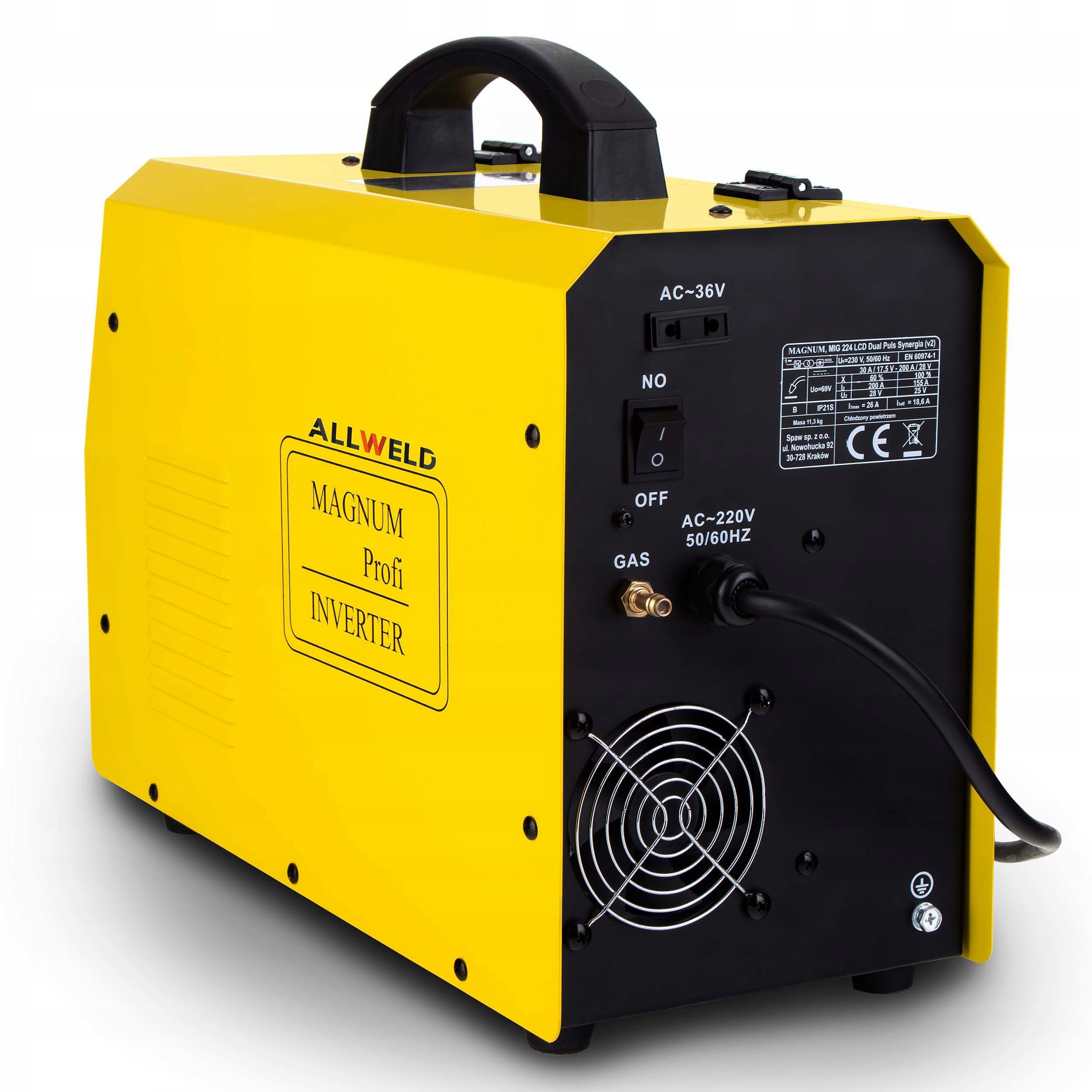 Producent: MAGNUM ║ Metody spawania: MIG/MAG, FLUX, MMA, TIG LIFT ║ Zasilanie: 230V ║ Prąd spawania: 200A ║ Sprawność: 60%