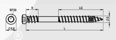 Wkręt tarasowy RT UNI, 5,0 mm, główka cylindryczna, gniazdo TX 20, gwint dociągający, kolor naturalny, stal nierdzewna A2, 400 sztuk