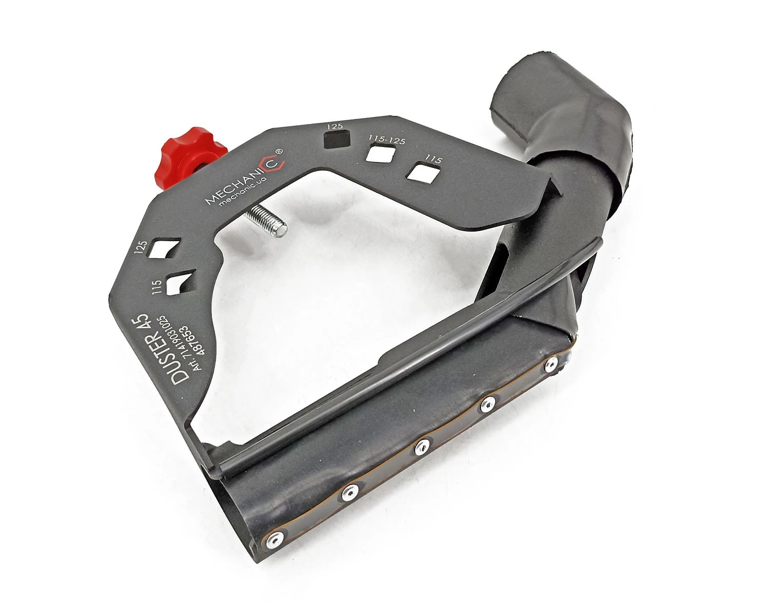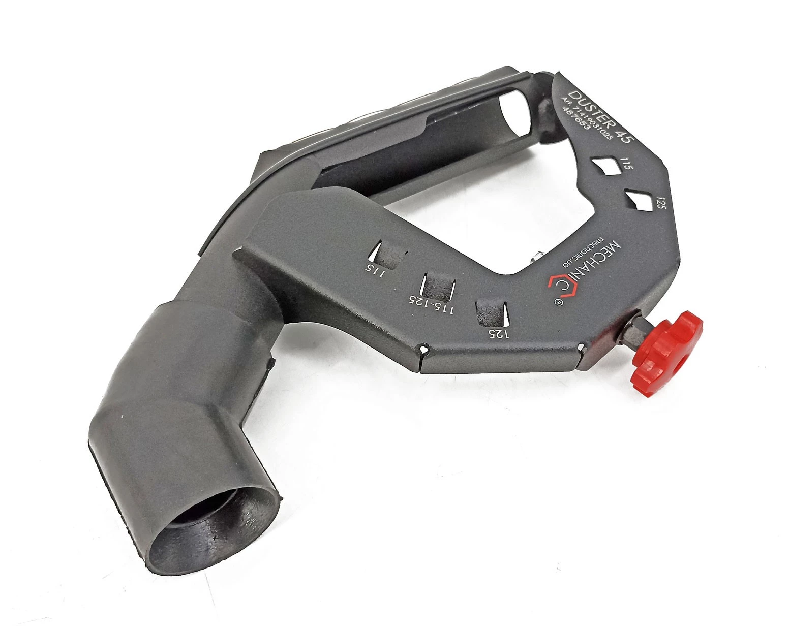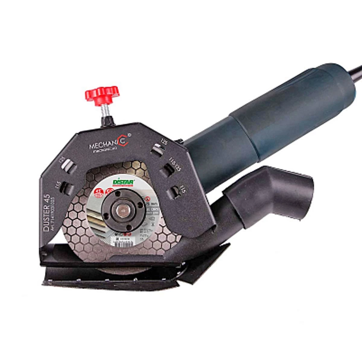 - Przystawka DUSTER 45 jest uniwersalna. Nadaje się do montowania na szlifierkach kątowych 115, 125 każdego modelu.