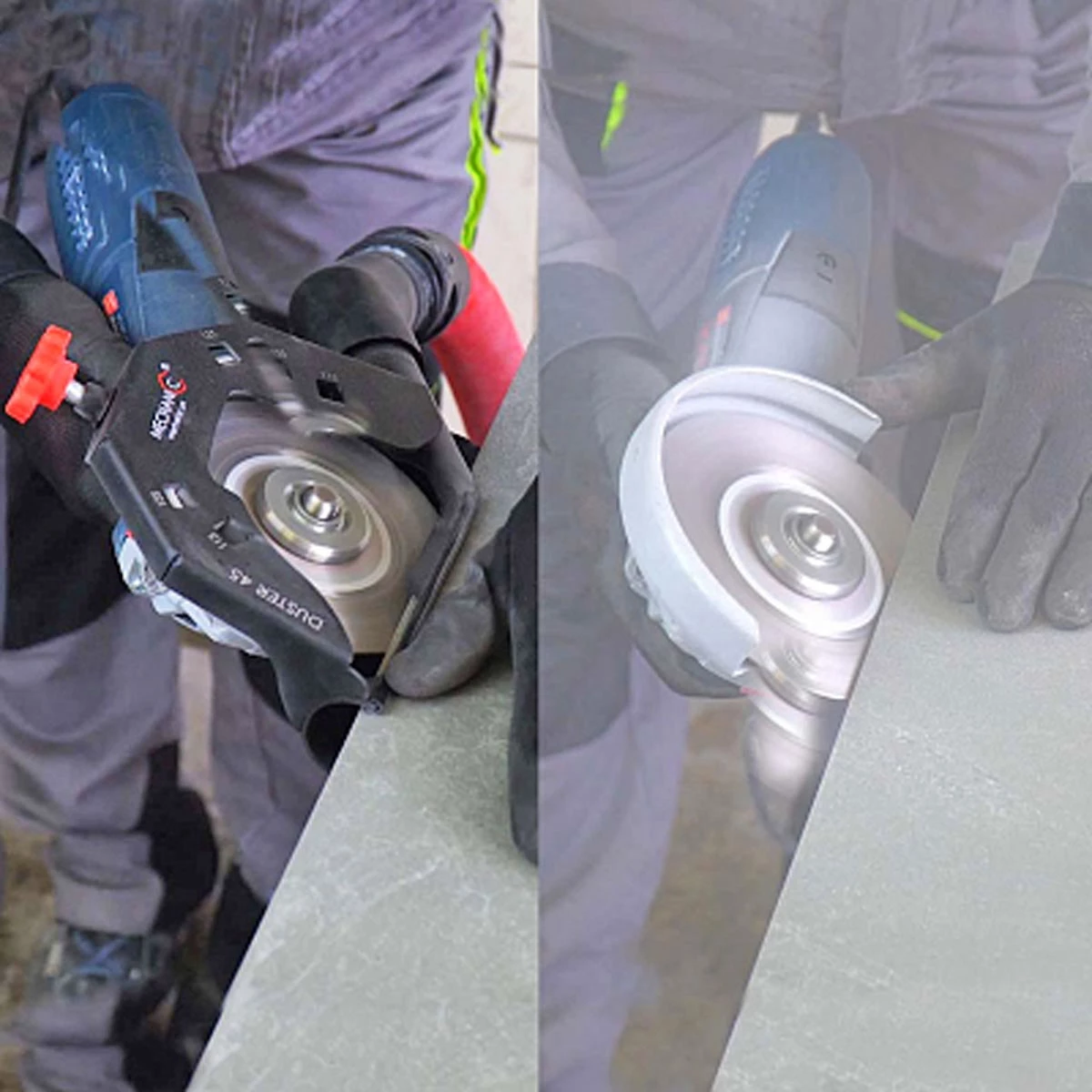 - Przystawka do szlifierki kątowej DUSTER 45 całkowicie rozwiązuje problem usuwania kurzu, który prawie cały trafia do odkurzacza.