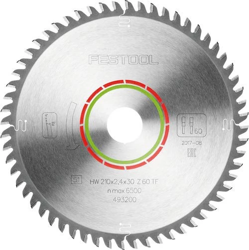 - Specjalistyczna tarcza pilarska Festool o wymiarach 210x2.4x30mm i 60 zębach (TF). Geometria zęba trapezowo-płaskiego do czystego cięcia laminatów, HPL, tworzyw sztucznych i materiałów mineralnych. Dedykowana do zagłębiarki Festool TS 75.