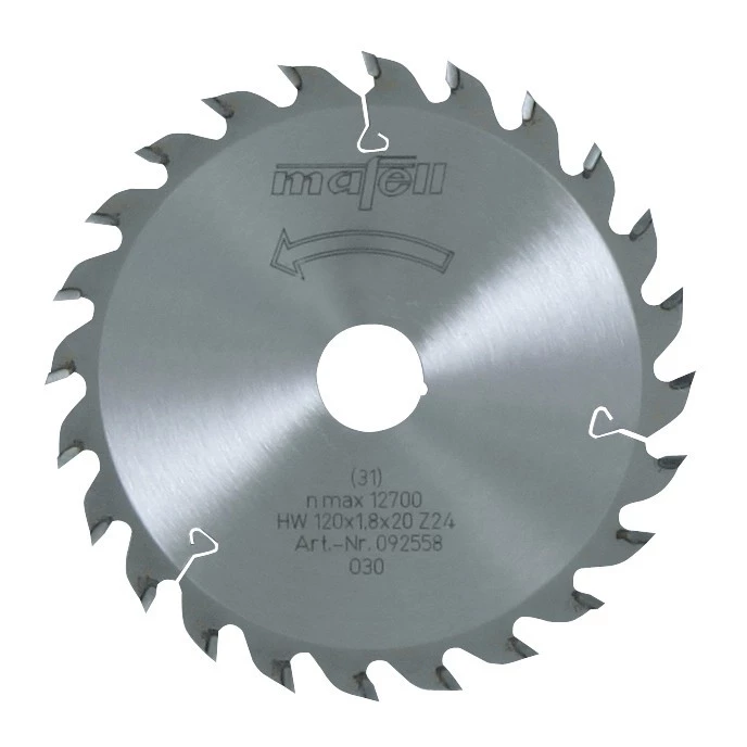 24-zębowa tarcza tnąca Mafell do KSS 40 18M bl, KSS 300 i MF26cc / 400. Doskonale nadaje się do cięcia sklejki i szybkiego cięcia drewna iglastego. Naprzemienne górne zęby fazowane z węglika wolframu.