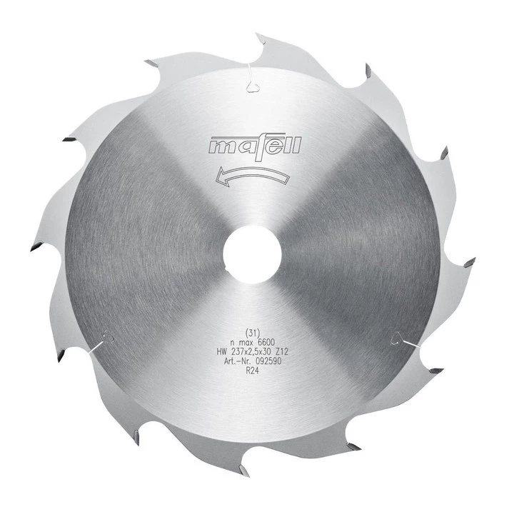 12-zębowa piła tarczowa Mafell do KSS 80Ec / 370 i K85Ec doskonale nadaje się do cięcia wzdłużnego i drewna iglastego. Naprzemienne górne zęby fazowane z węglika wolframu.