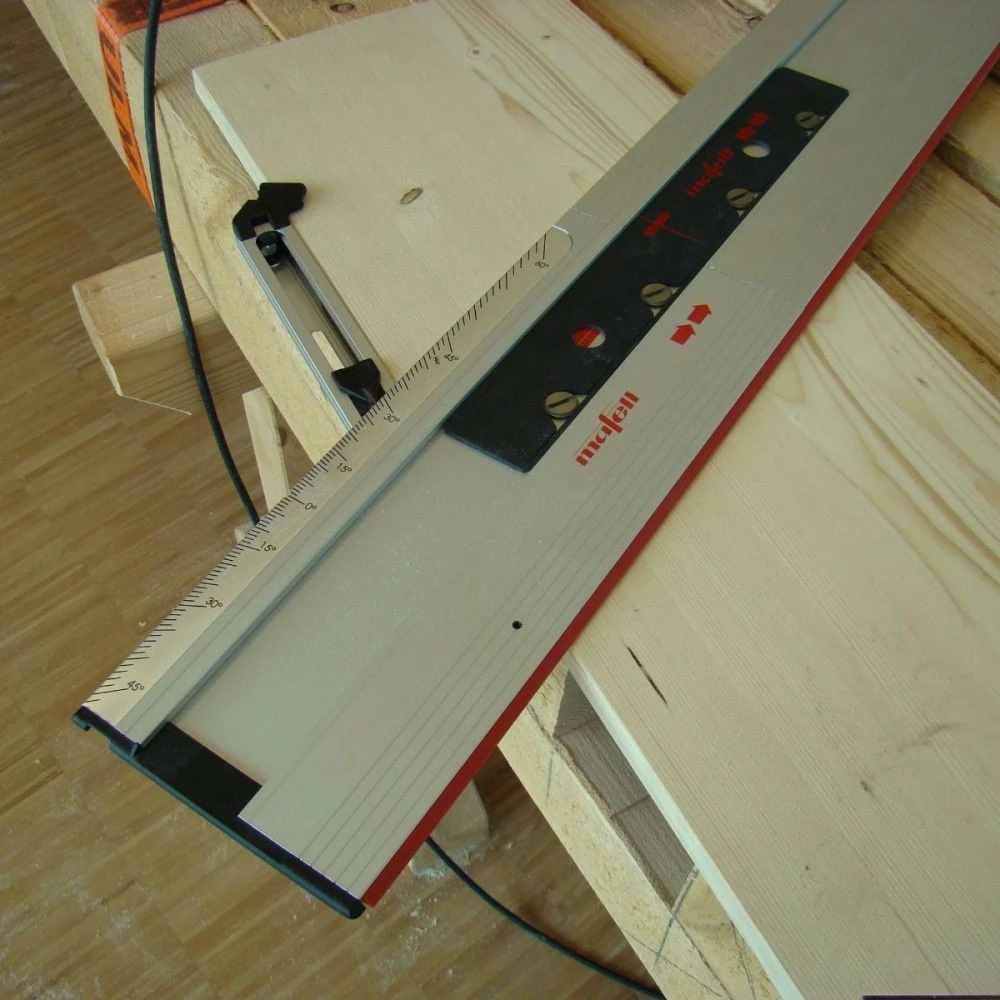 Szyna do cięcia pod kątem Mafell F-WA stosowana w celu uzyskania idealnie kwadratowych cięć lub dowolnych przekątnych do 60 °.