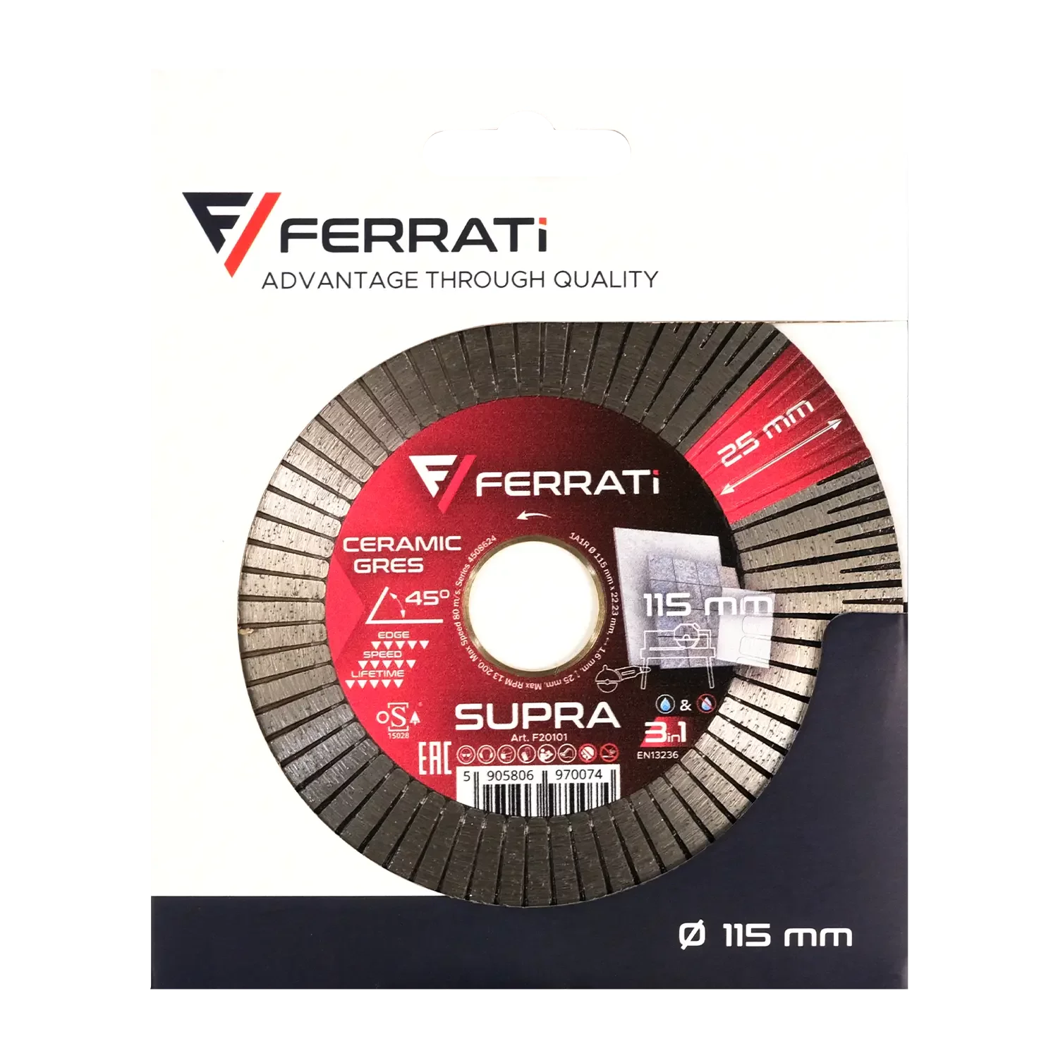 Tarcza diamentowa tnąca i szlifująca 115mm SUPRA