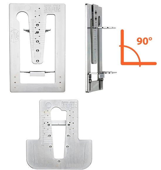 Szablony do frezowania Arunda typu B przeznaczone są do wytwarzania bardzo wytrzymałego połączenia kształcie jaskółczego ogona pod kątem 90°. Dostępne są w różnych rozmiarach w zależności od potrzeb cieśli: #50, #80, #120 i #160.
