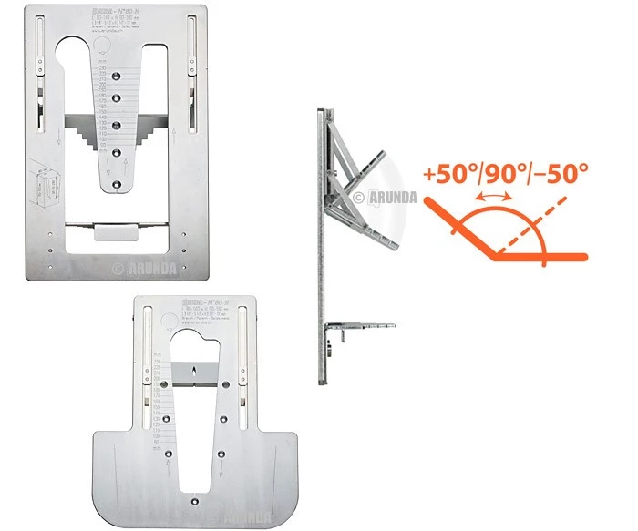 Szablony do frezowania Arunda typu N przeznaczone są do wytwarzania bardzo wytrzymałego połączenia kształcie jaskółczego ogona pod kątami -50°/90°/+50°.90°. Dostępne są w różnych rozmiarach w zależności od potrzeb cieśli: #50, #80, #120.