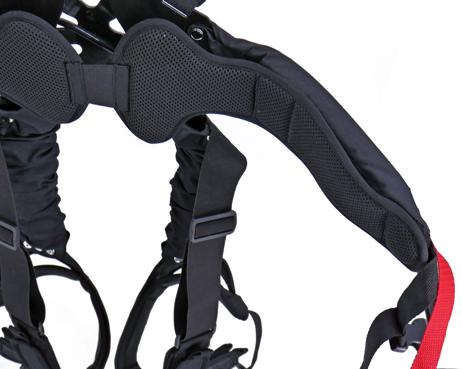 - Łatwe Zakładanie i Regulacja: Zakładanie i zdejmowanie jest szybkie i proste, a bezstopniowa regulacja pasów nośnych pozwala na idealne dopasowanie do sylwetki użytkownika w zakresie rozmiarów od S do XXL.