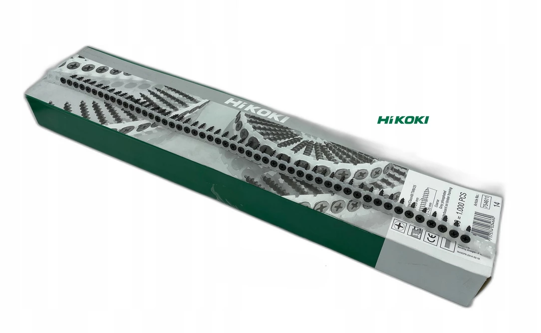 - Wkręty fosfatowane na taśmie HiKOKI 3.9x25mm do montażu płyt gipsowo-kartonowych na konstrukcjach drewnianych. Gwint grubozwojowy zapewnia mocne trzymanie. Opakowanie 1000 szt. (20 taśm x 50 szt.). Do wkrętarek automatycznych.