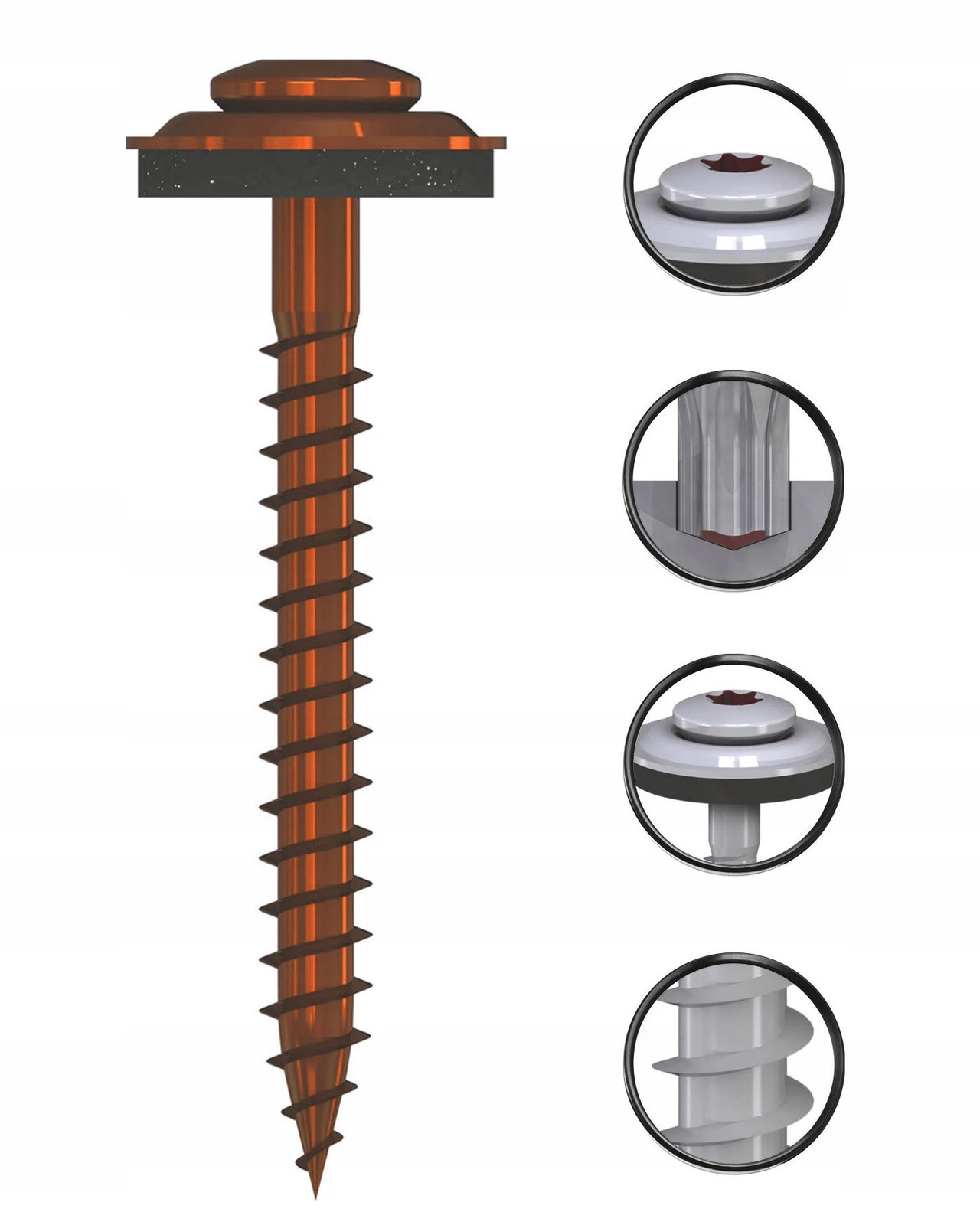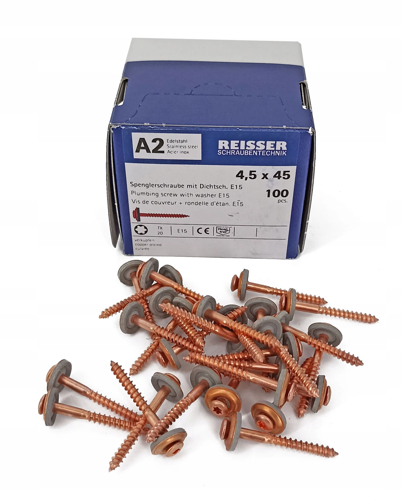 Wkręty farmerskie miedziowane z podkładką Reisser 4,5x45 stal nierdzewna A2 100 szt