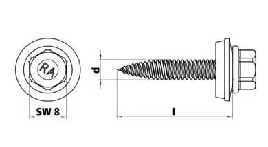 Wkręt do fotowoltaiki RP-T2, główka sześciokątna, gwint podwójny pełny, stal nierdzewna A2/bimetal, 100 sztuk