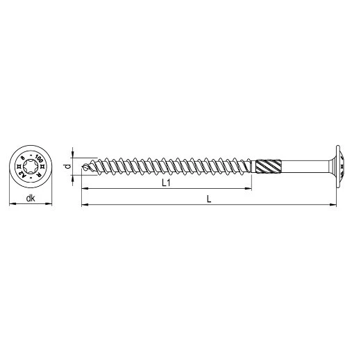 Specjalny gwint (podwójna linia) umożliwiający szybki montaż dzięki dużemu skokowi, zmniejsza opór wkręcania.