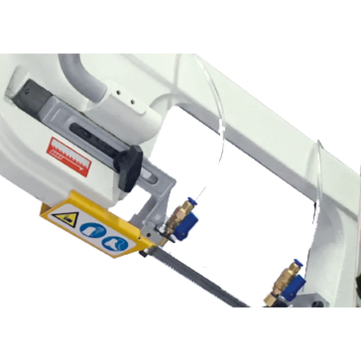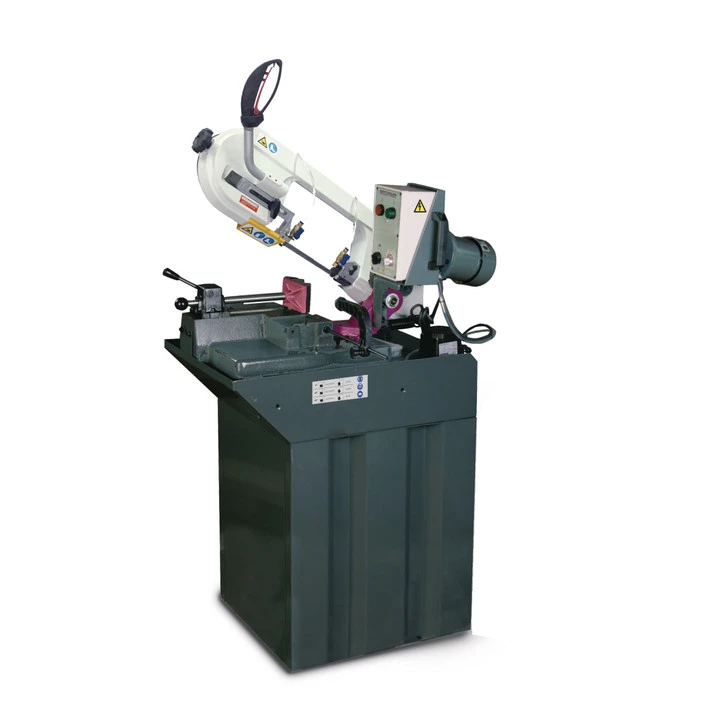 Piła taśmowa do obróbki metalu z wychylnym łukiem piły i bezstopniową regulacją prędkości taśmy piły.