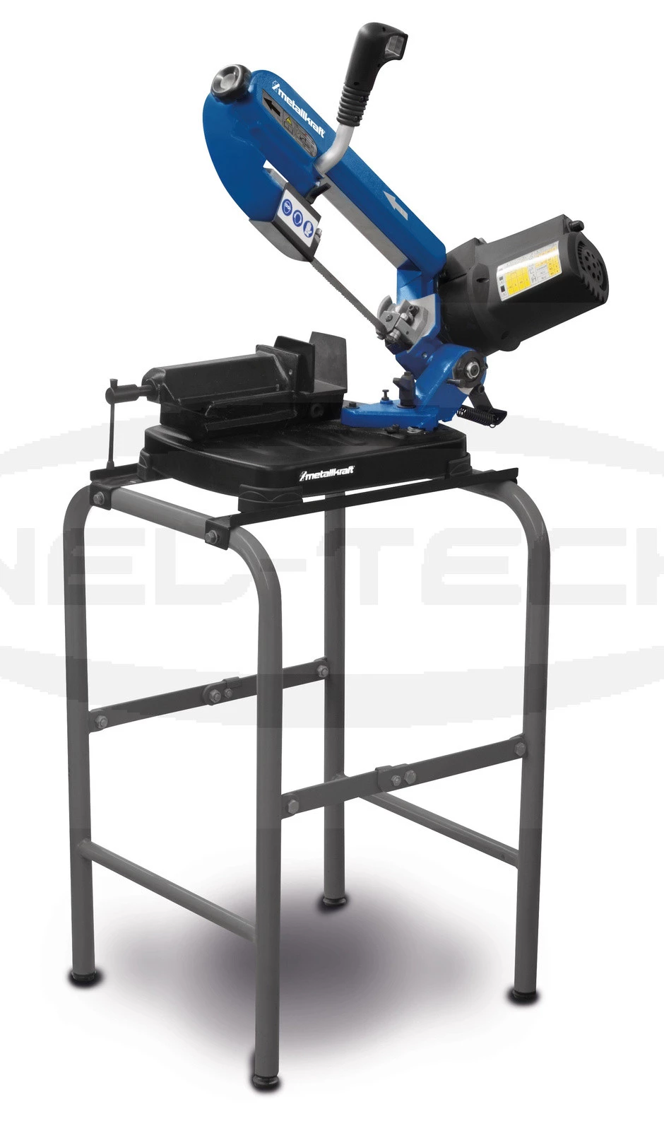 i ze stabilnym zabezpieczeniem na czas transportu - Dwie ruchome, regulowane prowadnice piły taśmowej ze zgarniaczem wiórów z metalu