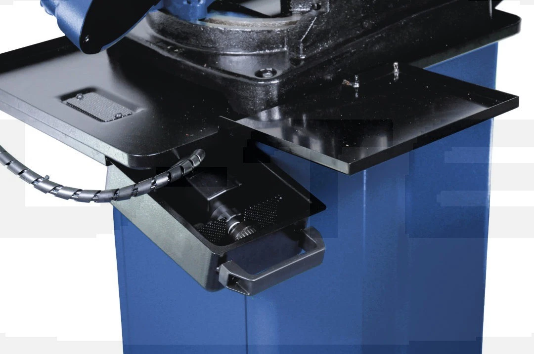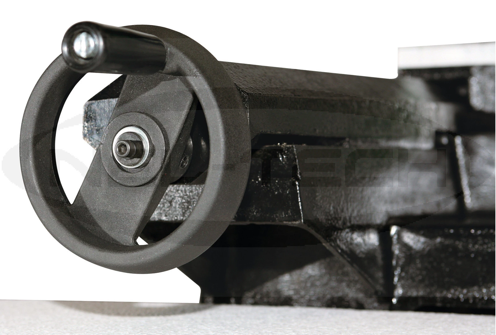 i ze stabilnym zabezpieczeniem na czas transportu - Dwie ruchome, regulowane prowadnice piły taśmowej ze zgarniaczem wiórów z metalu