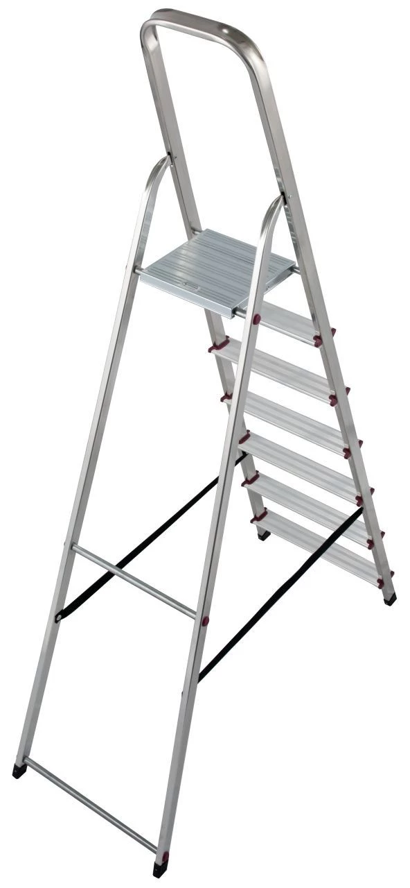 Drabina wolnostojąca ze stopniami , profile o przekroju prostokątnym wykonane z aluminium.
