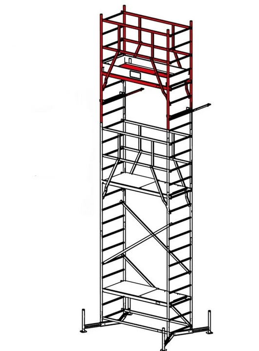 Stabilizatory wysuwane z ram podstawy, zwiększają powierzchnię podparcia rusztowania i poprawiają jego stabilność.