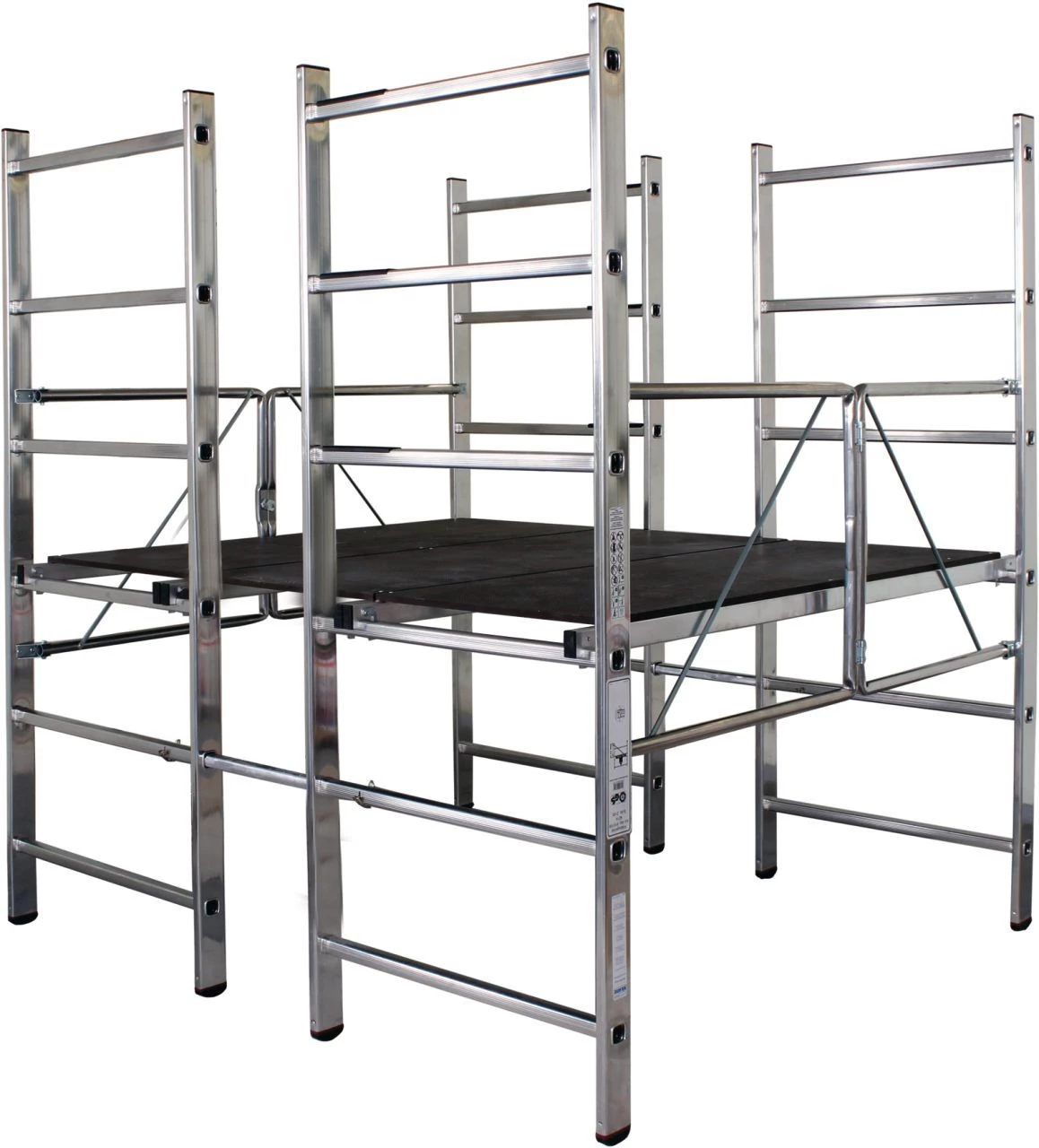 Wielkość powierzchni zapewniająca stosunkowo dużo miejsca dla pracowników oraz materiału i narzędzi , możliwość użytkowania jako dwa osobne rusztowania składane.