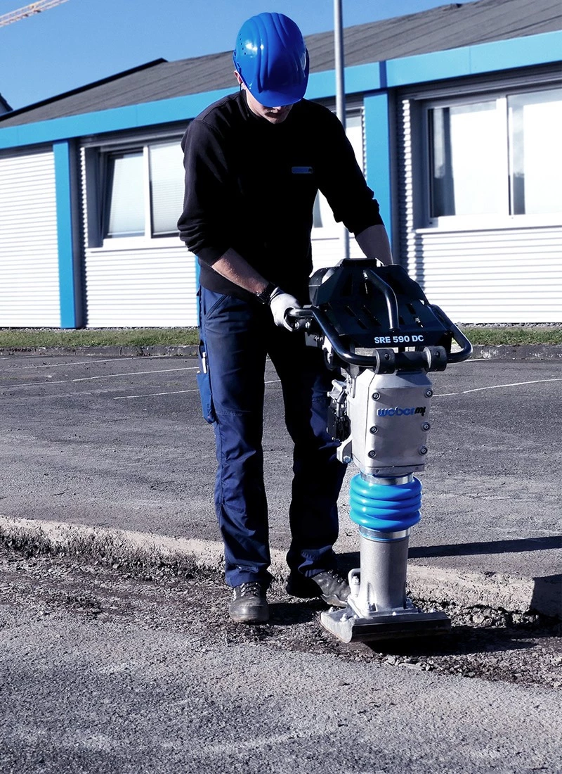 Ubijaki stopowe SRE 590 DC umożliwiają pracę w pomieszczeniach zamkniętych, w wykopach o głębokości przekraczającej długość ramienia oraz w miastach objętych kontrolą emisji spalin. Ponadto urządzenia te przyczyniają się do ochrony klimatu i środowiska.