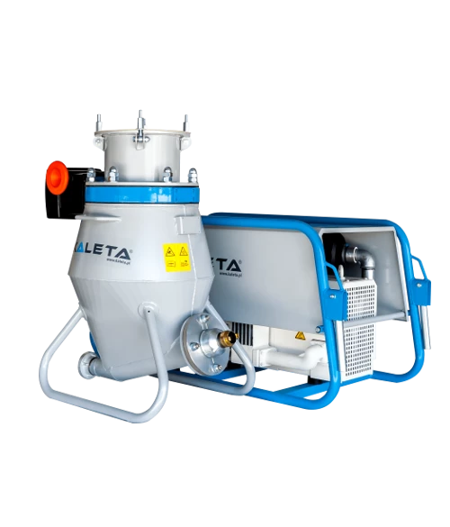 Urządzenie składa się z kompresora łopatkowego i skrzynki sterowniczej umieszczonej na sztywnej konstrukcji, dzwonu (zbiornika podawczego) oraz węża powietrznego i sondy.