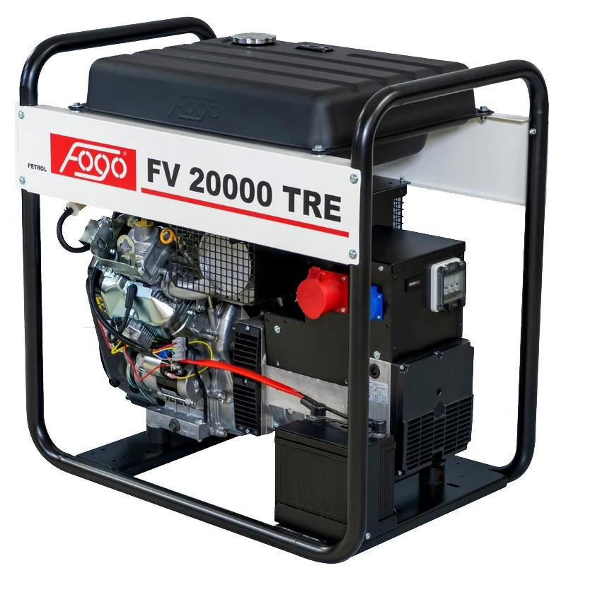 Agregat wyposażony w gniazda: 400V 32A/ 230V 16A, z zabezpieczeniem przeciążeniowym, licznik czasu pracy. Cyfrowa stabilizacja napięcia AVR.