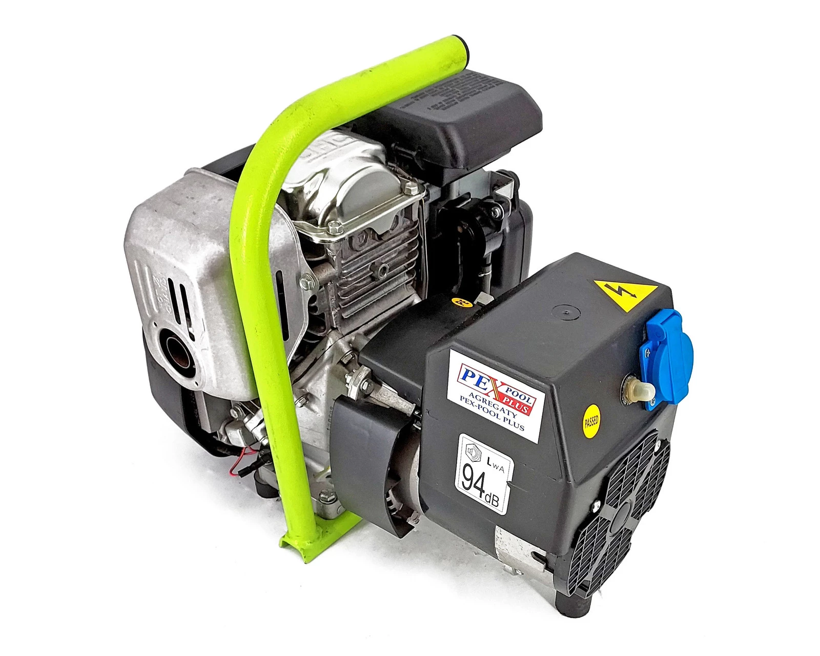 - Solidna konstrukcja urządzenia, silnik oraz prądnica zamocowane do stalowej ramy na amortyzatorach