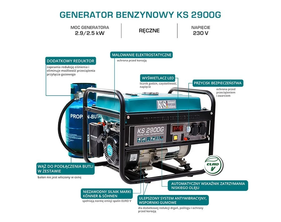 Używając gazu LPG jako paliwa, obniżasz przede wszystkim koszty użytkowania urządzenia. Różnica pomiędzy agregatem benzynowym a hybrydowym zwróci się po bardzo krótkim czasie pracy urządzenia.