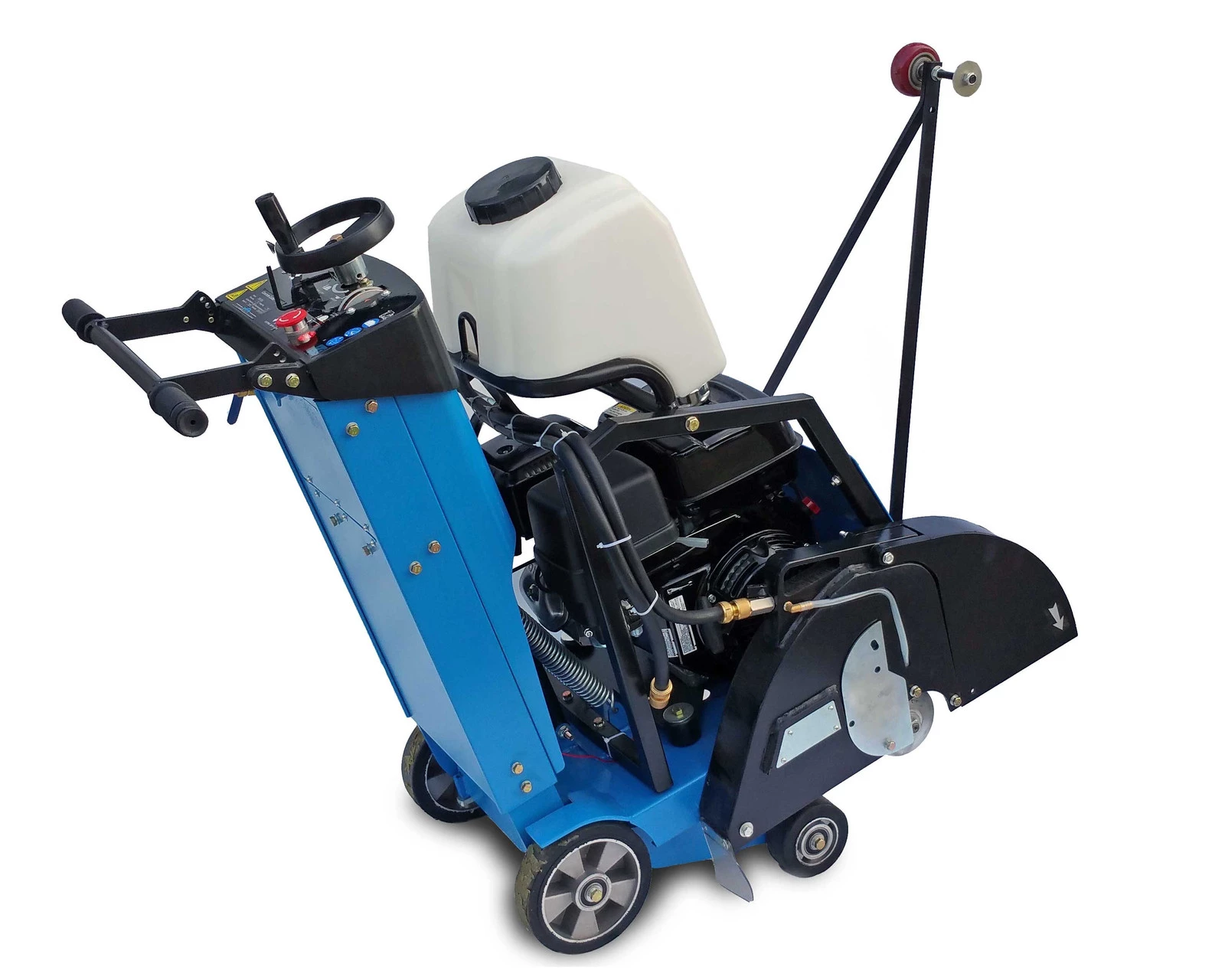 • Czytelny i praktyczny wskaźnik głębokości cięcia. Hamulec blokujący koła.