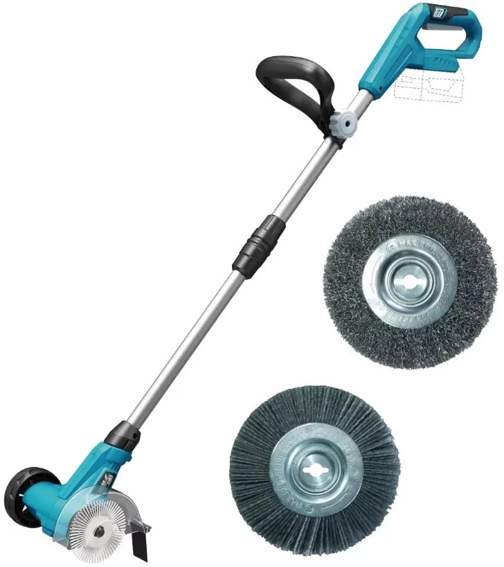 Szczotki posiadają średnicę 100 mm. Dodatkowa rękojeść jest regulowana pod względem kąta nachylenia, tak by dobrać najlepszą pozycję pracy urządzeniem.